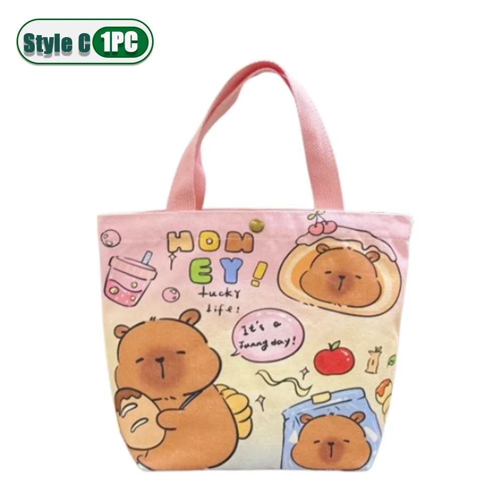 1-10 шт. Холщовая сумка-тоут большой вместимости с капибарой, Милая сумка для бенто, Сумка для поездок на работу, Подарочная сумка для праздника, Портативная сумка, Детские подарочные сумки