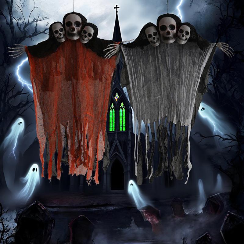 Большой Подвесной Трехголовый Череп Призрак Хэллоуин Украшение Дома с Привидениями Марлевый Реквизит Жуткий Дверной Проем Ужас Подвесное Украшение