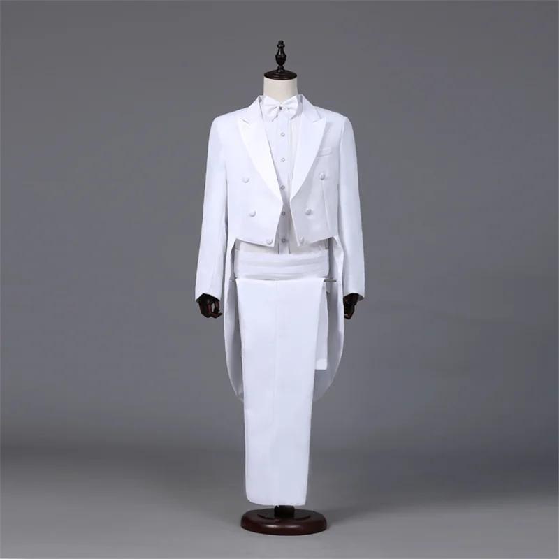Мужской фрак Классический Современный Белый и Черный Базовый Стиль Мужской Костюм с Фраком Певца Мага Сценическая Куртка Наряды