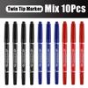 5/10 шт. Перманентный маркер Черный/Синий/Красный Масляный маркер Ручка Двусторонний Тонкий Нид Маркер Чернила Канцелярские товары Школьные и офисные принадлежности
