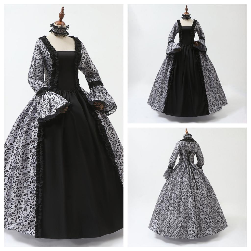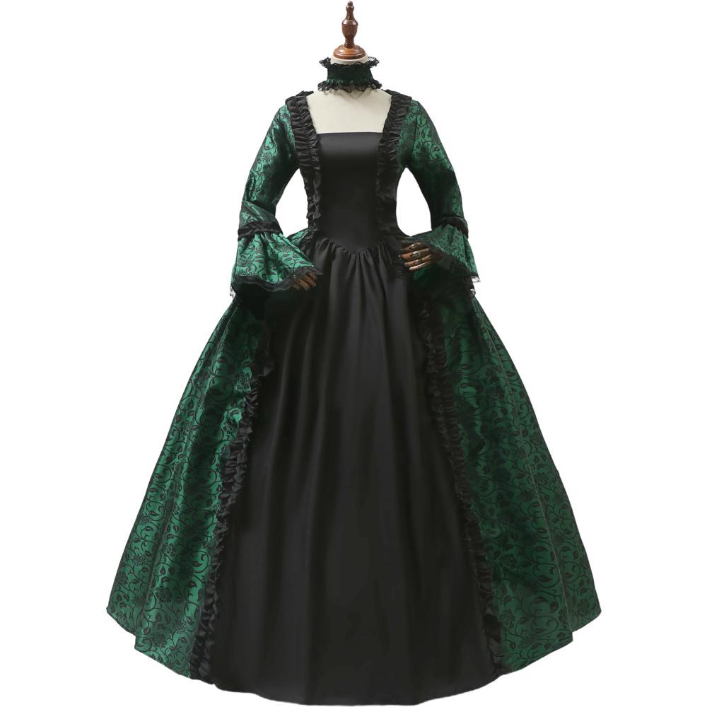 Косплей Платье Средневековое Расклешенное Рукав Вечернее Формальное Платье Готическое Цветочное Платье