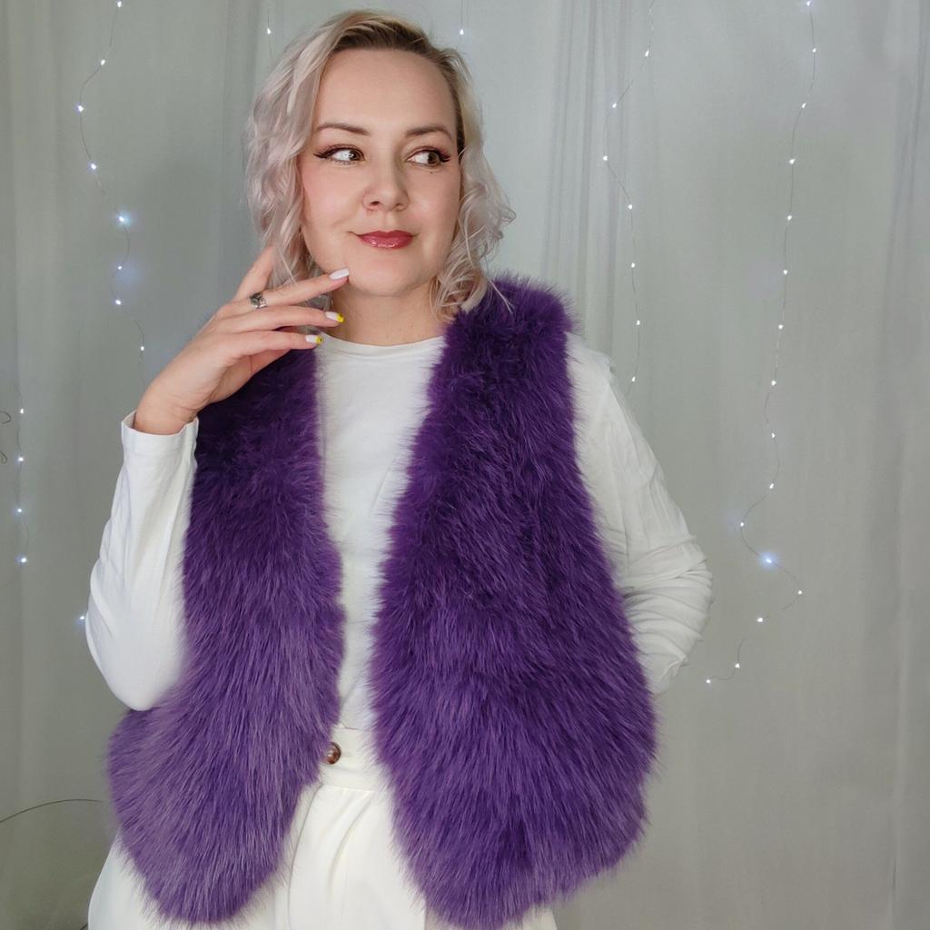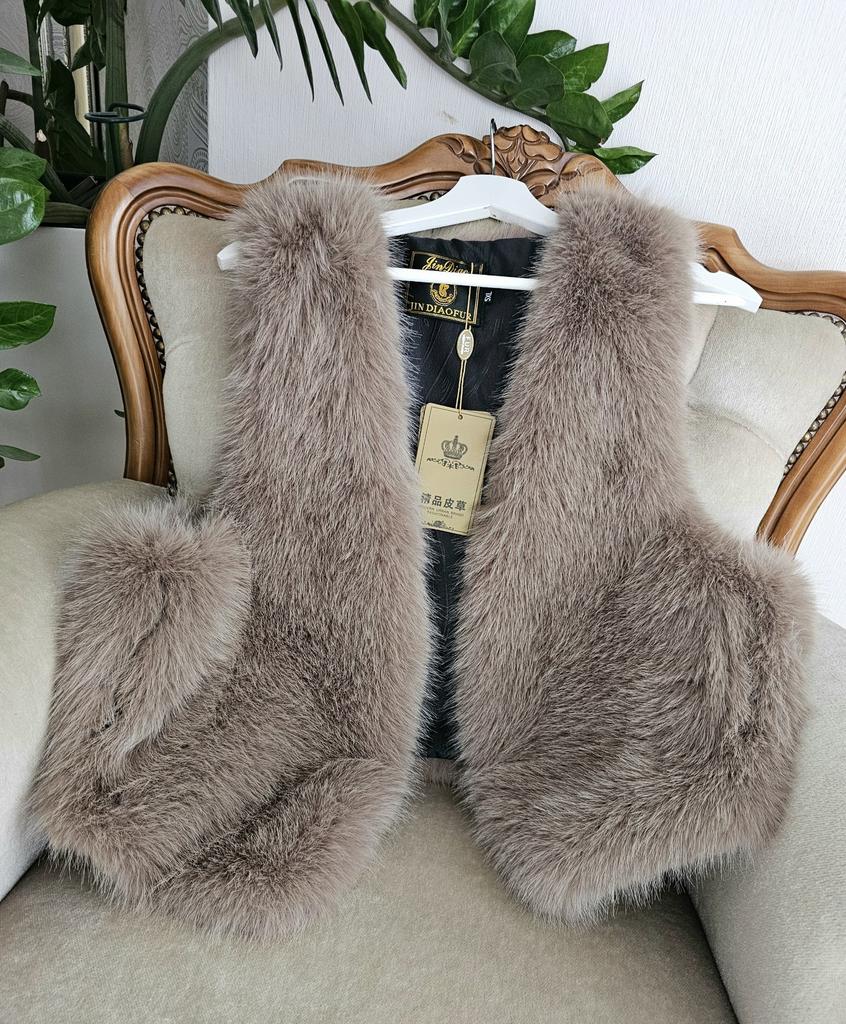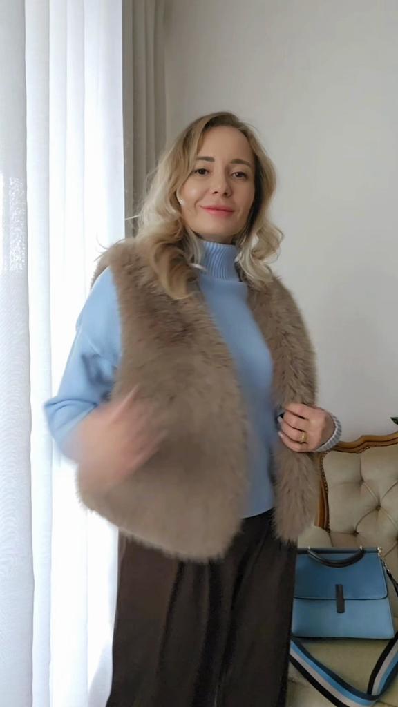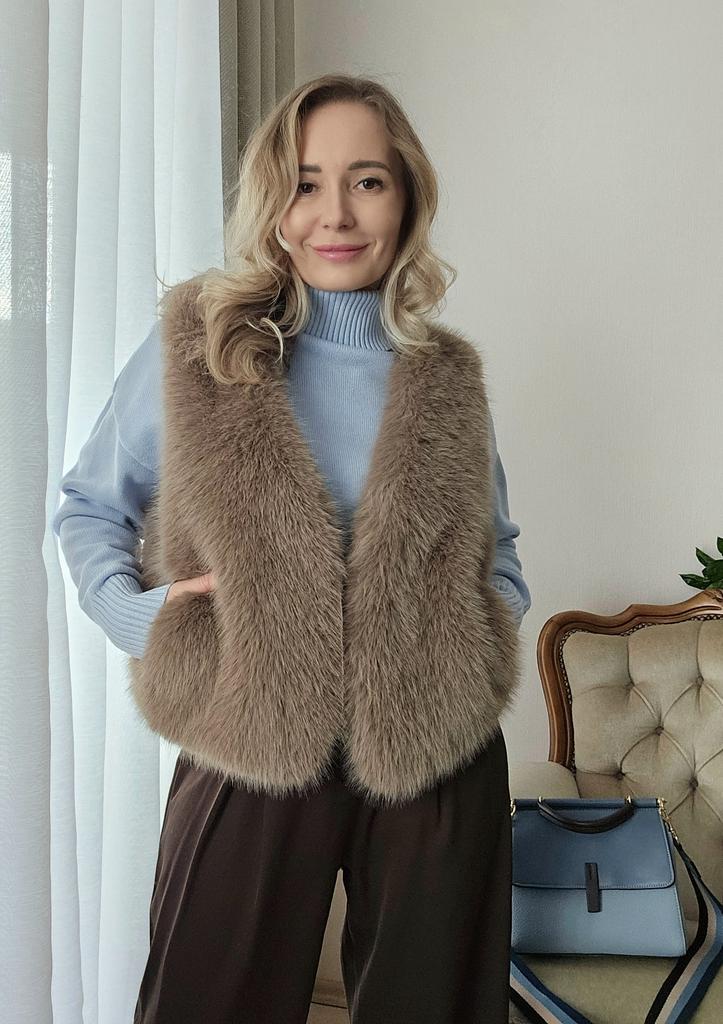 Очень красивая жилетка!Не отличить от натурального меха!Элегантно сидит, карманы на месте, цвет натурального меха! Спасибо!Я в полном восторге!