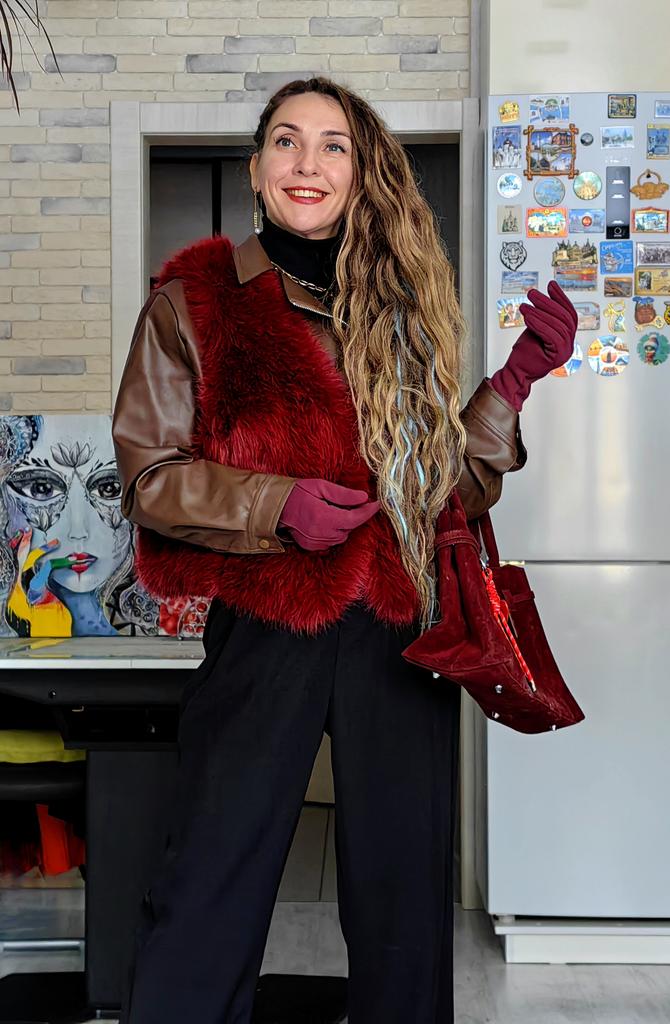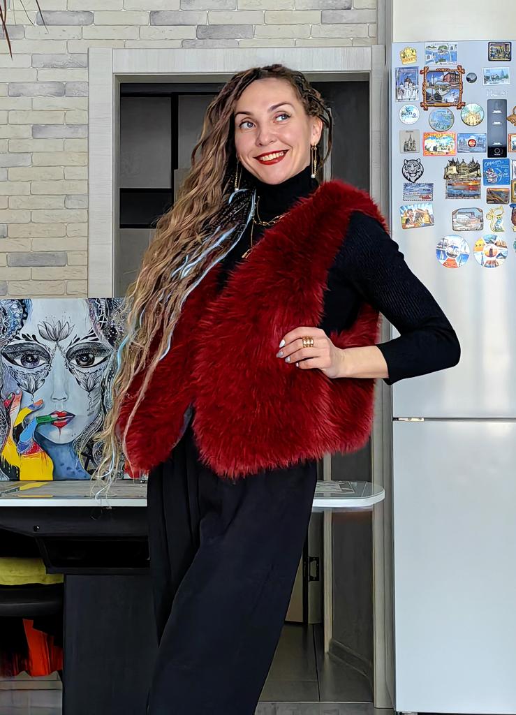 Меховая жилетка цвет спелой вишни 🍒 Всем солнечный приветик 👋😉 Несу ещё одну классную, тёплую, достойную и яркую вещь в вкусном ягодном цвете 🍒🤗 Меховые жилеты - это модный и тёплый акцент в образах в холодный сезон Жилеты подойдут для тех, кому хочется выделяться и создавать яркие образы 🫶 У продавца есть выбор по цветам Заказала размер 6XL Максимально сядет на параметры, как у мамули На мне жилет в этом размере, конечно, сел очень-очень свободно Мамулины параметры: 🎗рост 157см 🎗вес 73кг 🎗длина плеч 42см 🎗объём груди 110см 🎗объём талии 95см 🎗объём бёдер 105см. Мои параметры: 🎗 рост 160см 🎗 вес 53кг 🎗 длина плеч 40см 🎗 объём груди 93см (75D) 🎗 объём талии 63см 🎗 объём бёдер 93см. Качество: 🍒 искусственный мех 🍒 мех густой, хорошо набитый, ворс длинный, не линяет 🍒 подклад синтетический, но плотный и с набивным рисунком 🍒 пройма широкая 🍒 спереди жилет чуть длиннее 🍒 очертания жилета мягкие и плавные 🍒 спереди глубокие удобные карманы 🍒 швы ровные 🍒 качество отличное. Точные замеры жилетки в размере 6XL: 📏 ОГ - 112см 📏 объём низа жилета - 114см 📏 плечи - 36см 📏 длина жилетки от плеча спереди - 58см, сзади - 50см 📏 объём проймы - 76см. Мы жилеткой довольны очень-очень и рекомендуем её всеми ручками 🤗💞 Спасибо, продавцу и Джуму 😘 Чмок всех кто со мной на Джуме 😘 Желаю удачных покупок 🛍😊 терпения и весны в душе 🤗 До скорого 🙌😊 Песня во втором видео: Sometimes jah «Inner City Grooves» 🎶💃🎶