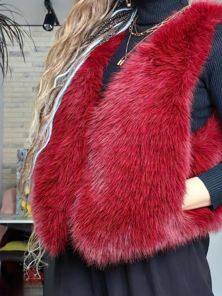 Осенне-зимний жилет из искусственного лисьего меха, короткое красное пальто для женщин, милые и теплые топы — купить товар онлайн с бесплатной доставкой по всему миру!