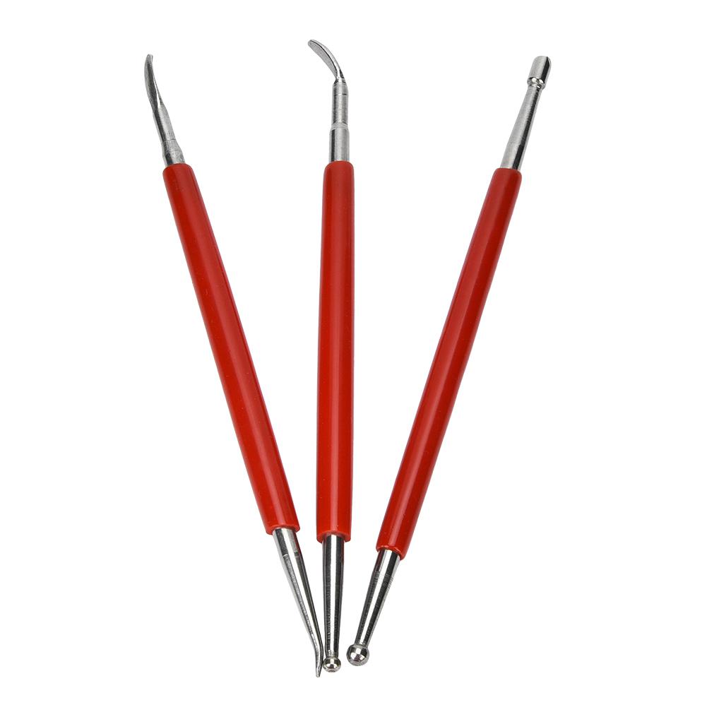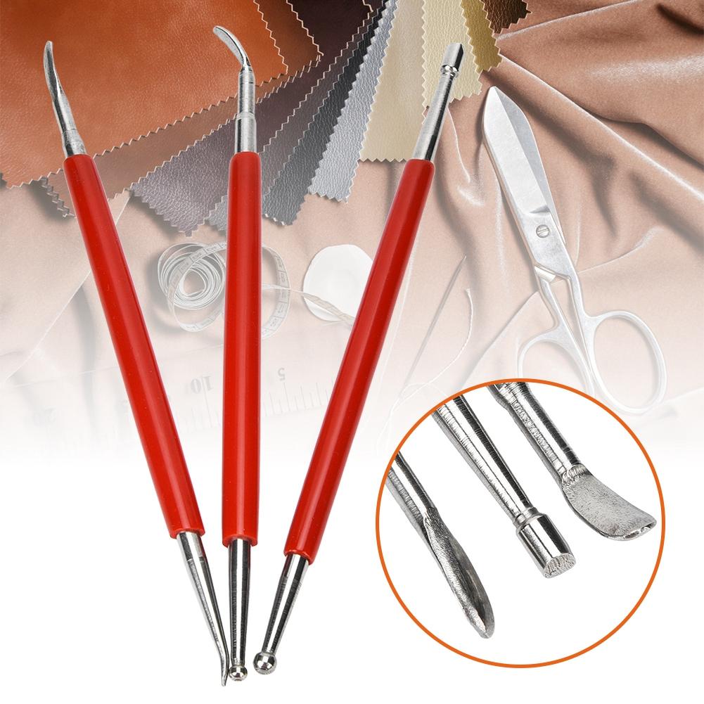 3 шт. Красная нержавеющая сталь DIY Инструмент для штамповки края, резьбы, ручка для детализации кожаной скульптуры