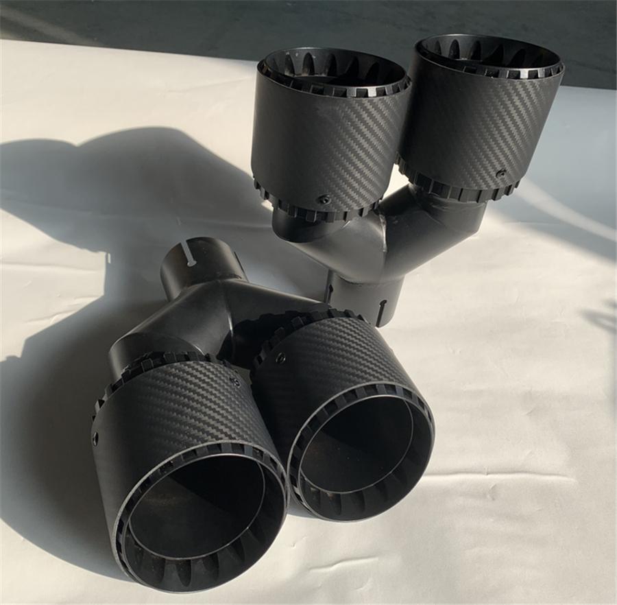 Пара Универсальных трехслойных 63мм Вход 89мм Выход 100% Настоящее углеволокно Автомобиль Внедорожник Двойная выхлопная труба Хвостовая насадка глушителя Покрытие черный
