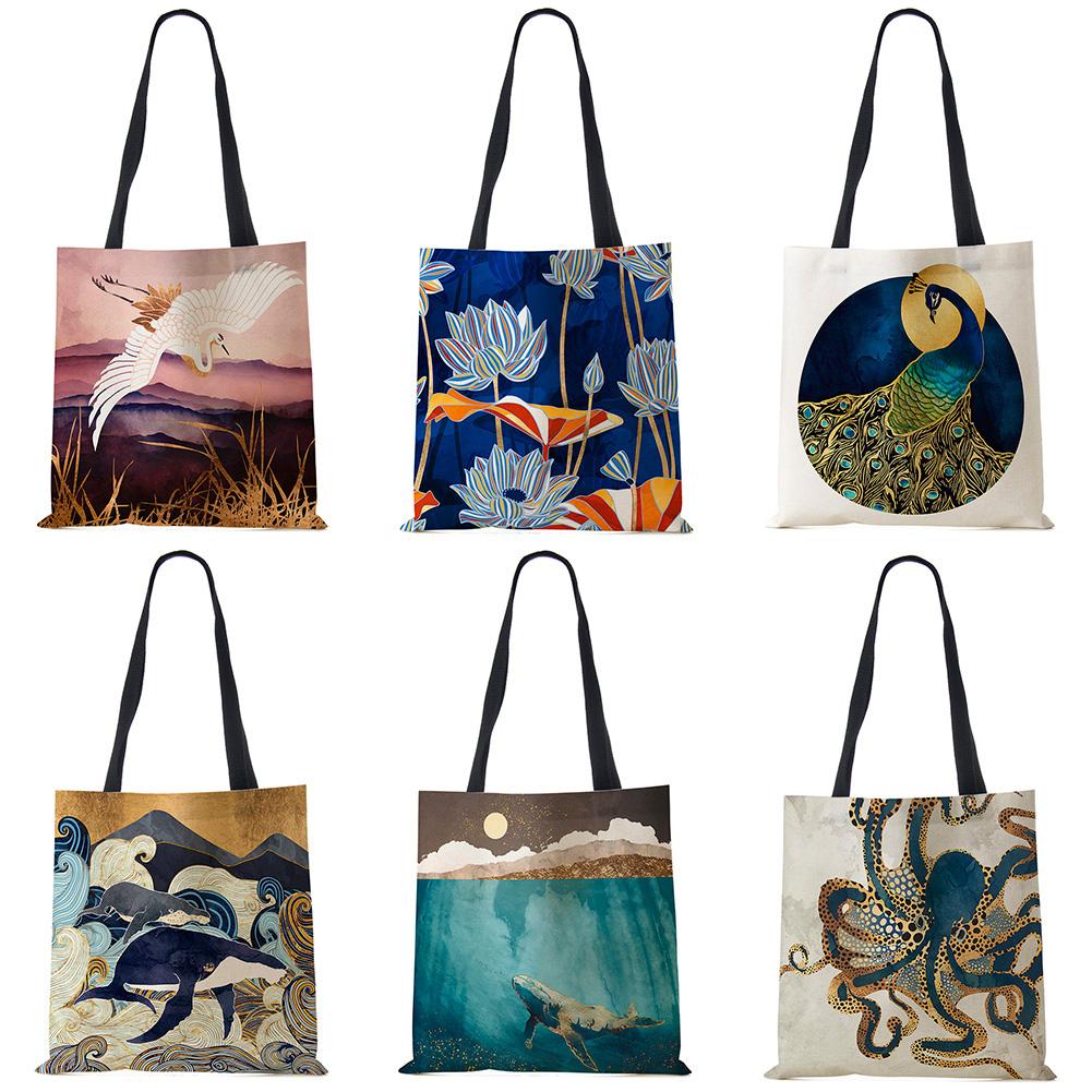 Японский дизайн укиё-э Повседневная женская сумка ручной работы Журавль Дизайнерская сумка-тоут Эко многоразовые плечевые сумки для покупок B13039 CLE — купить товар онлайн с бесплатной доставкой по всему миру!