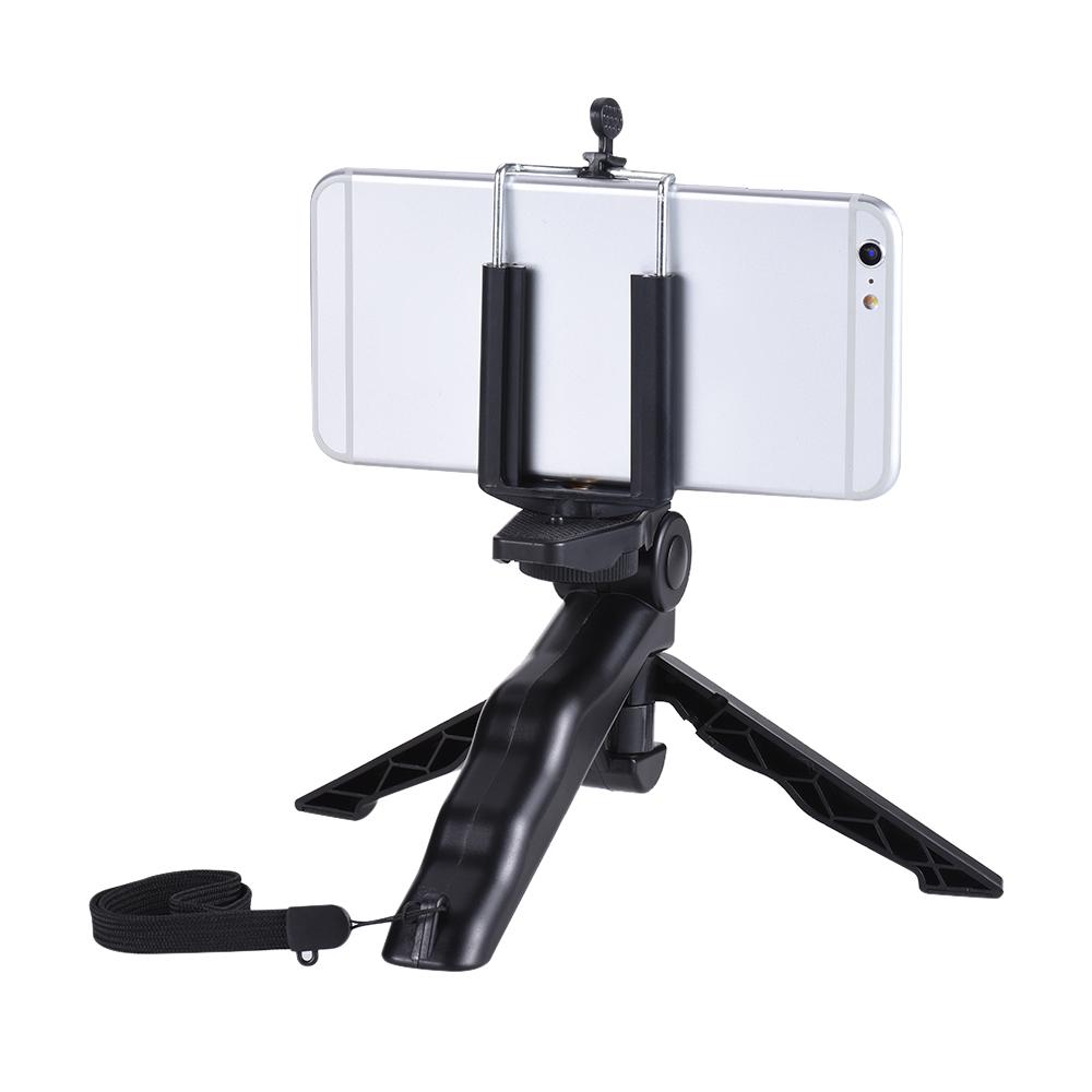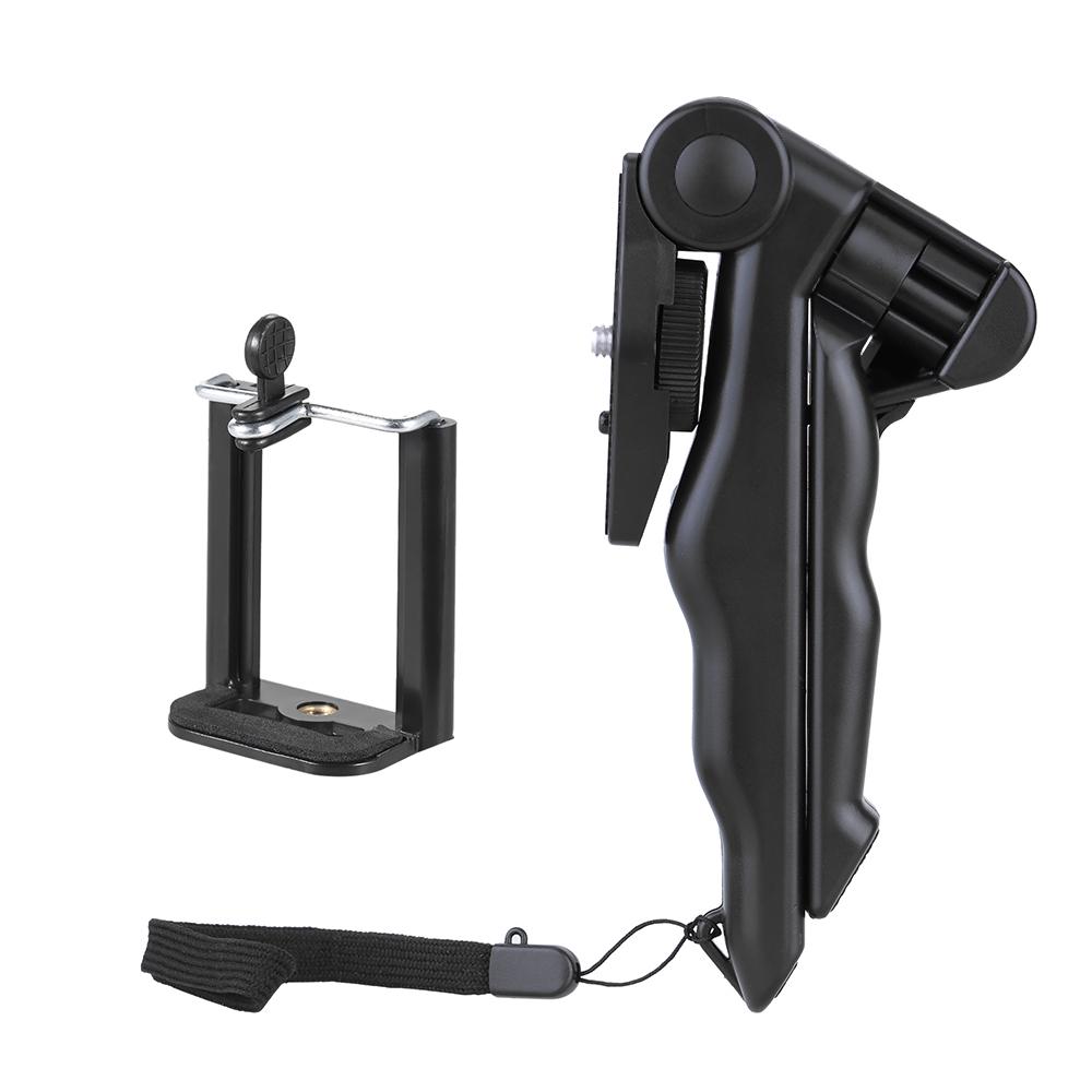 Mini tripod stand handheld stabilizer with smartphone clamp, can be applied to action camera, digital video camera, panoramic camera, selfie stick, smartphone and etc. Swing fold design, portable to carry, great for outdoor shooting.