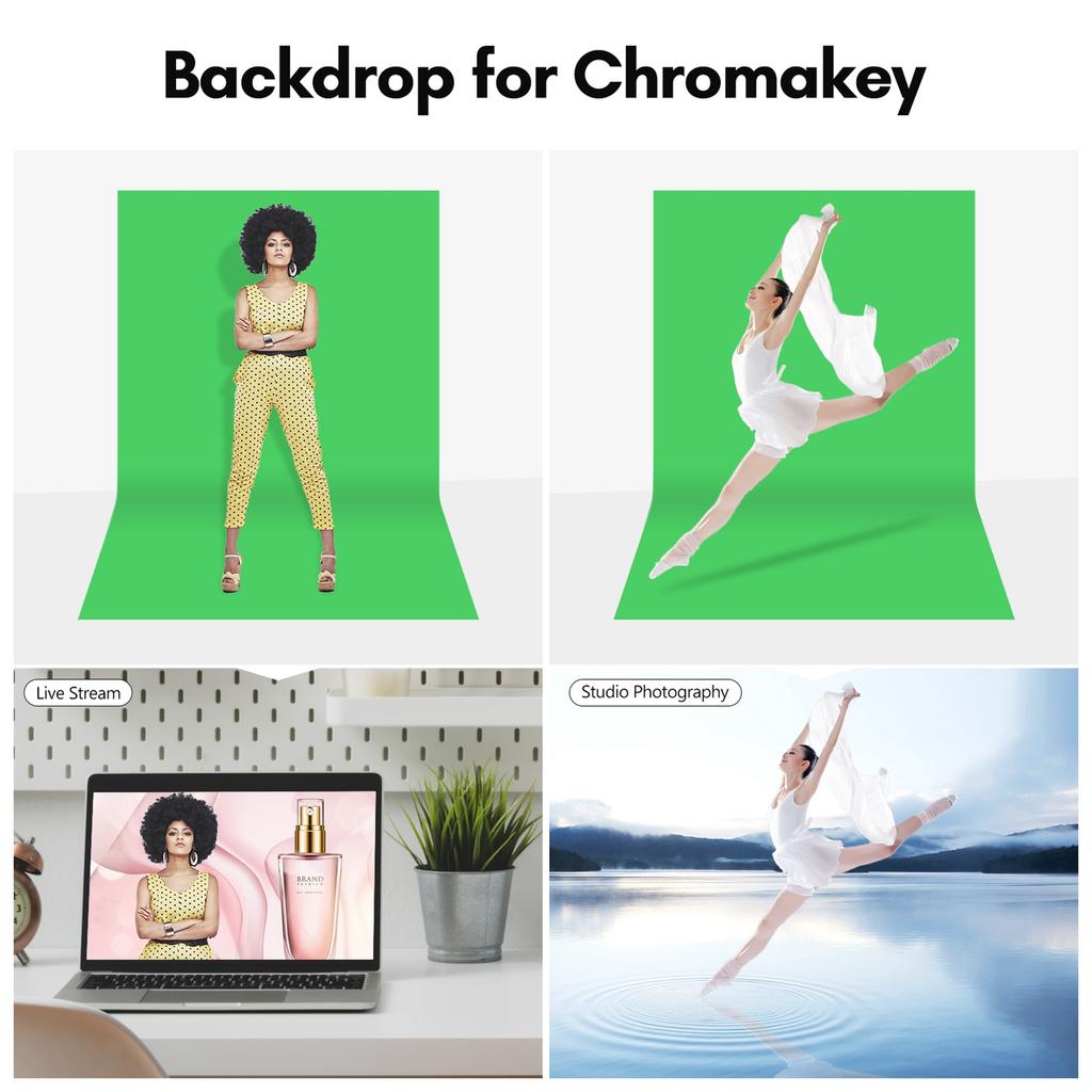 1. [Фон для хромакея] Изготовлен из премиальной полиэстеровой ткани, устойчив к складкам, бесшовный и не отражающий, обладает хорошей вертикальностью, дает хорошие фотографические эффекты, также идеально подходит для хромакея.