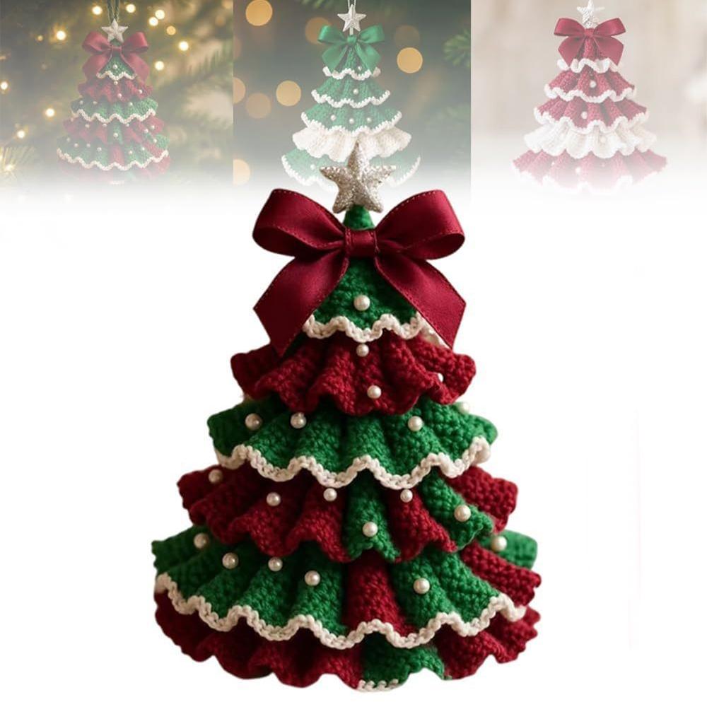 Diy Crochet Christmas Tree Kit With Yarn Hook Beads Instructions, Red And Green