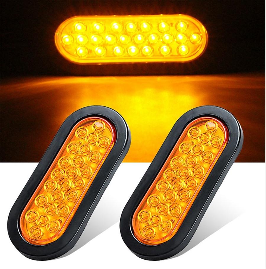 Универсальные 2x Овальные Стоп-сигнал Задний Противотуманный ДХО Поворот Герметичные Маркерные Фонари Врезной Монтаж 6" Дюймов 24 Светодиода Грузовик Прицеп Лодка Коммунальный Желтая Линза Водонепроницаемый 12В