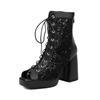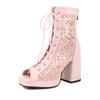 FOREADA Женские сандалии с полым сетчатым верхом, с открытым носком, на толстом высоком каблуке, на платформе, на шнуровке, на молнии, сексуальные ботинки для джазовых танцев, женская обувь, лето 46