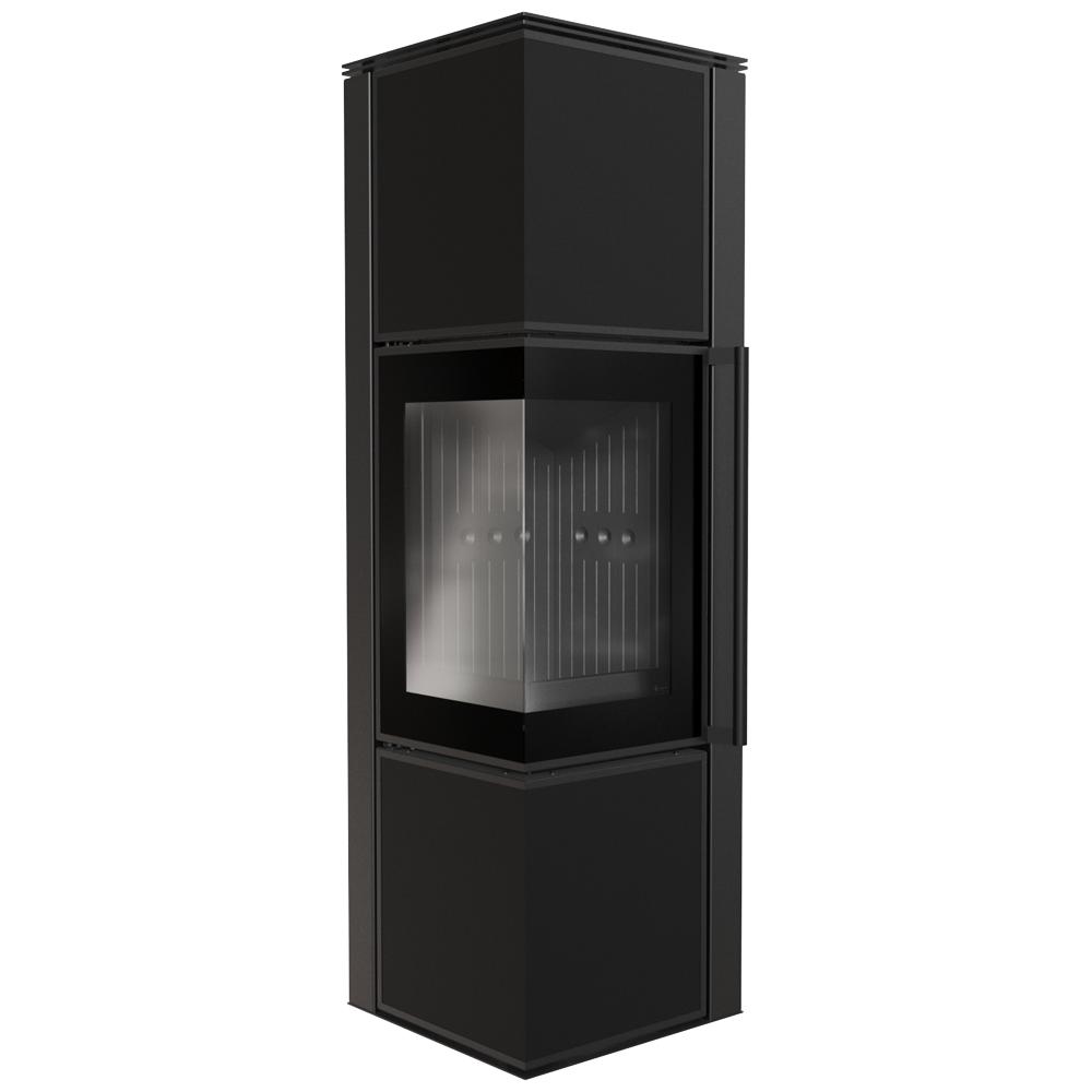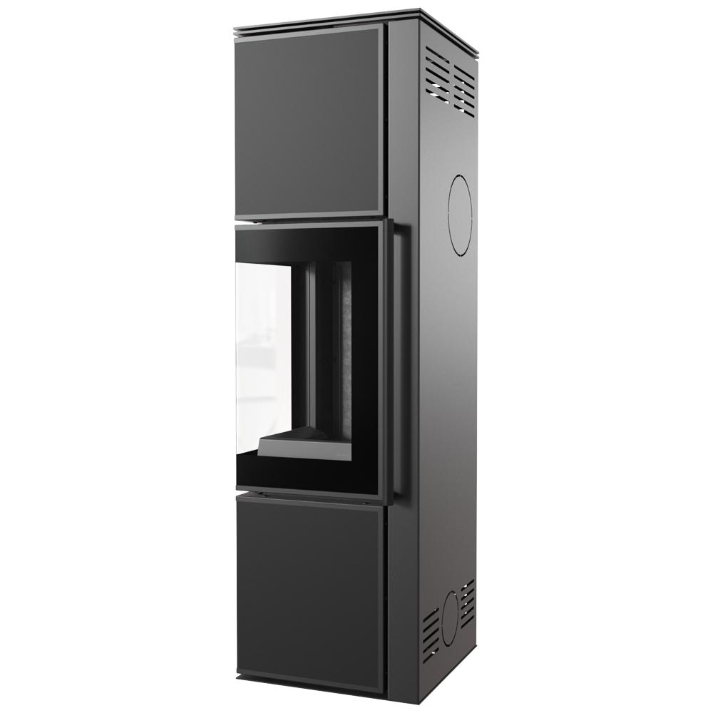 TORA is a modern wood-burning steel stove finished with a quartz sintered panel in the elegant Nero Assoluto colour and double-sided glazing. It is equipped with a corner door decorated with black glazing to deepen the vision of the fire. The stove has a convenient handle in the form of a rail for opening the door. It is a stove that offers comfort and safety, with a modern design.