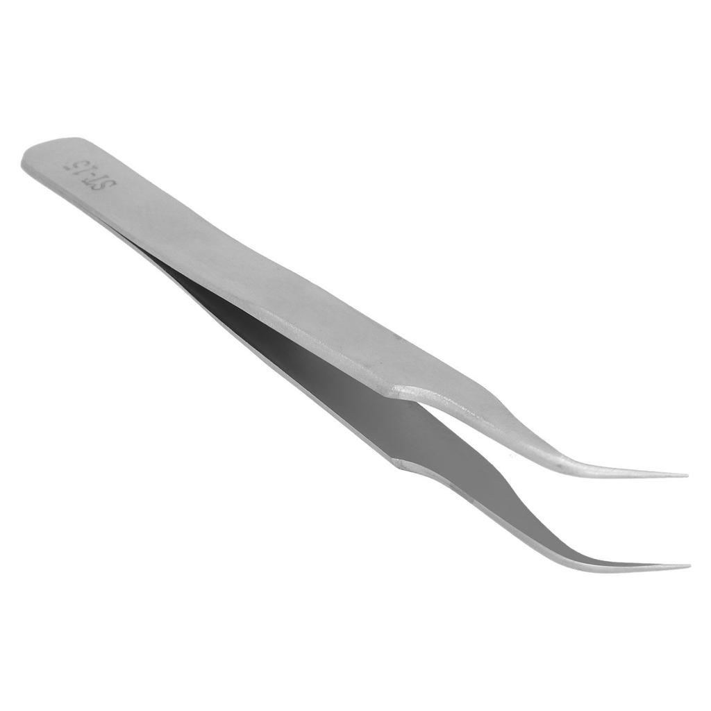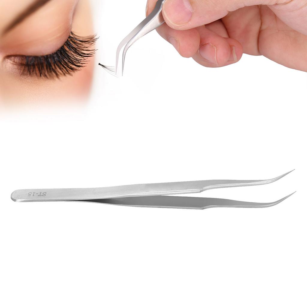 Stainless Steel AntiStatic False Eyelash Grafting Tweezers Clips Portable Eyelash Tool(ST15 Bend Head )