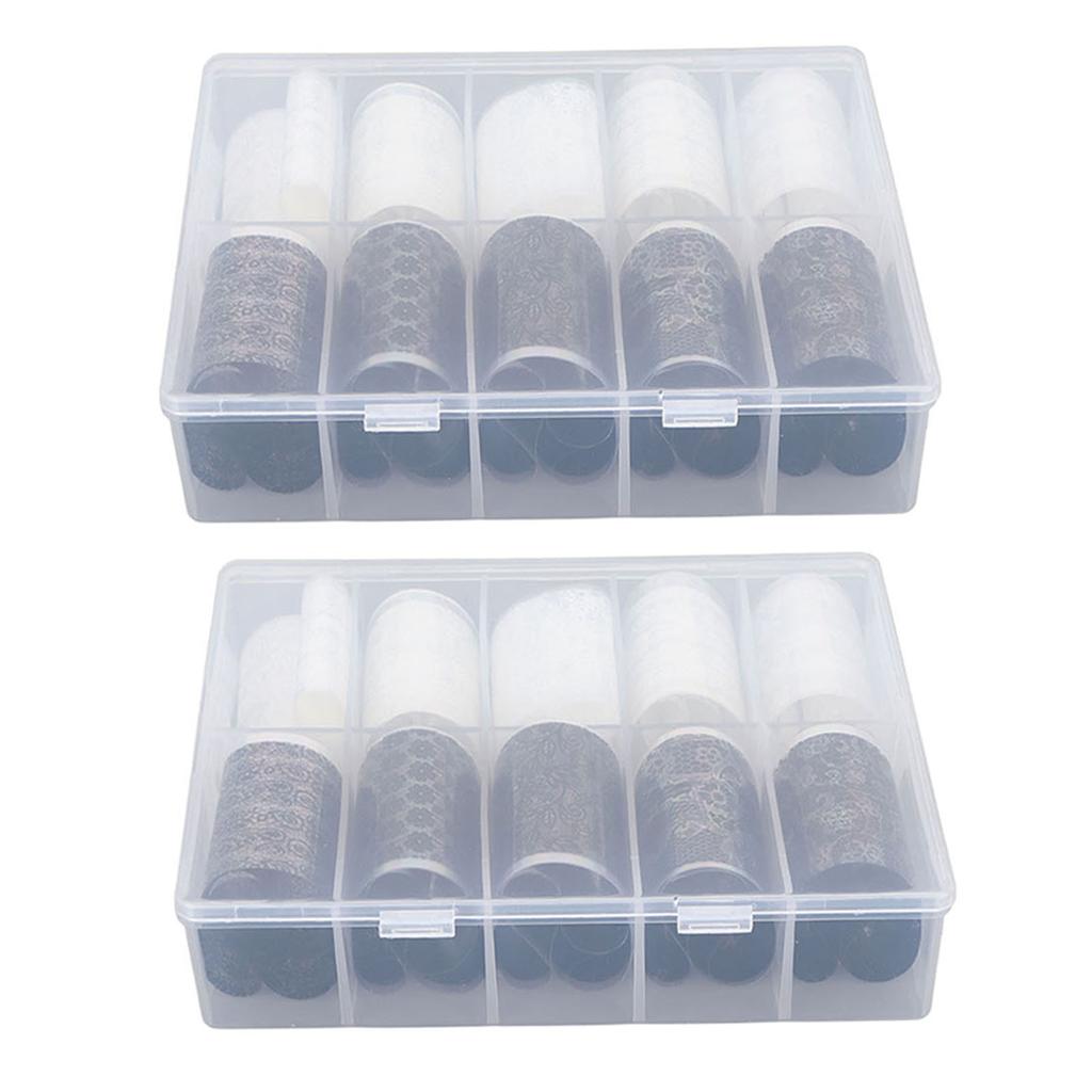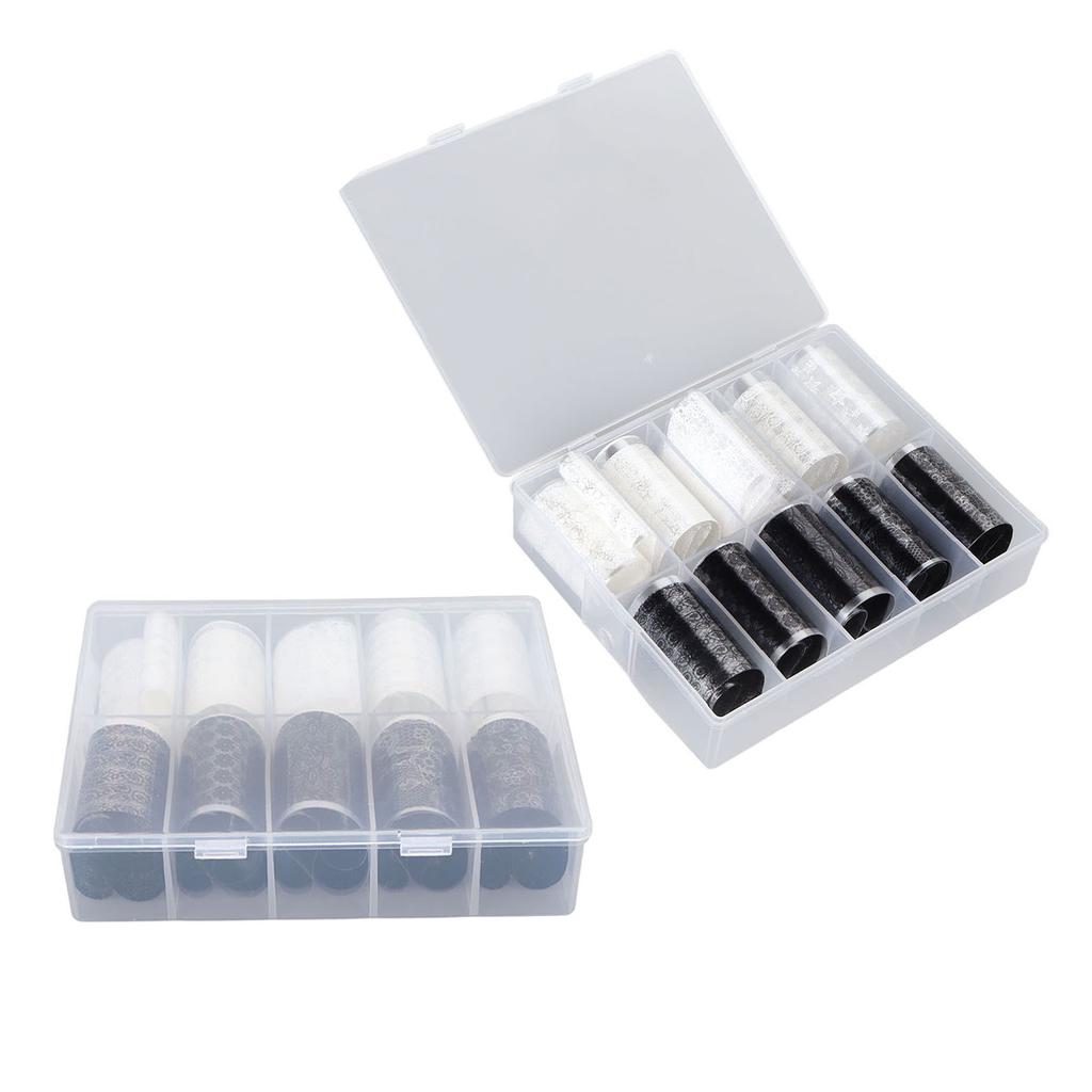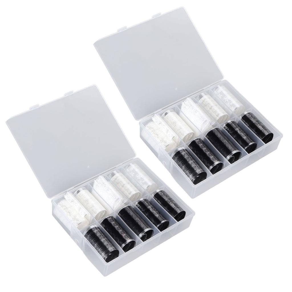 2 Бутылки 10 Сетка Наклейки для Переноса Фольги для Ногтей Черные Белые Кружевные Дизайны Фольги для Нейл-Арта Кружевные Наклейки для Ногтей