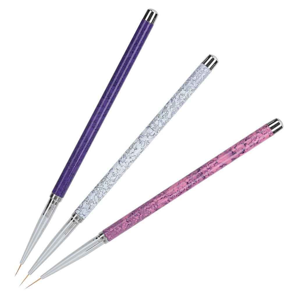Набор из 3 кистей для дизайна ногтей, кистей для рисования и дизайна ногтей (Ручка под мрамор)