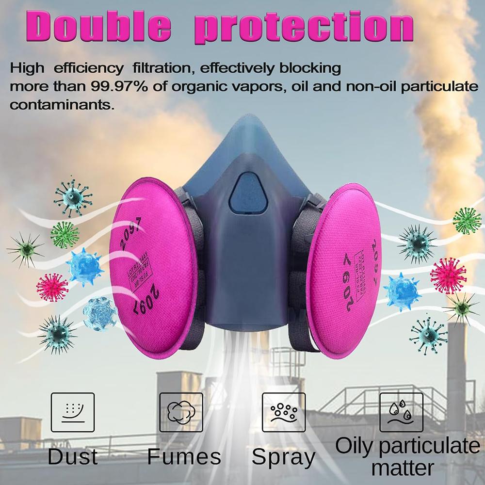 Фильтры 2097 для респираторов не подлежат стирке, пожалуйста, заменяйте их, когда сопротивление дыханию становится высоким или когда они загрязнены или повреждены.. Фильтры респираторной маски не производят кислород и не должны использоваться, когда концентрация кислорода ниже 19,5%.