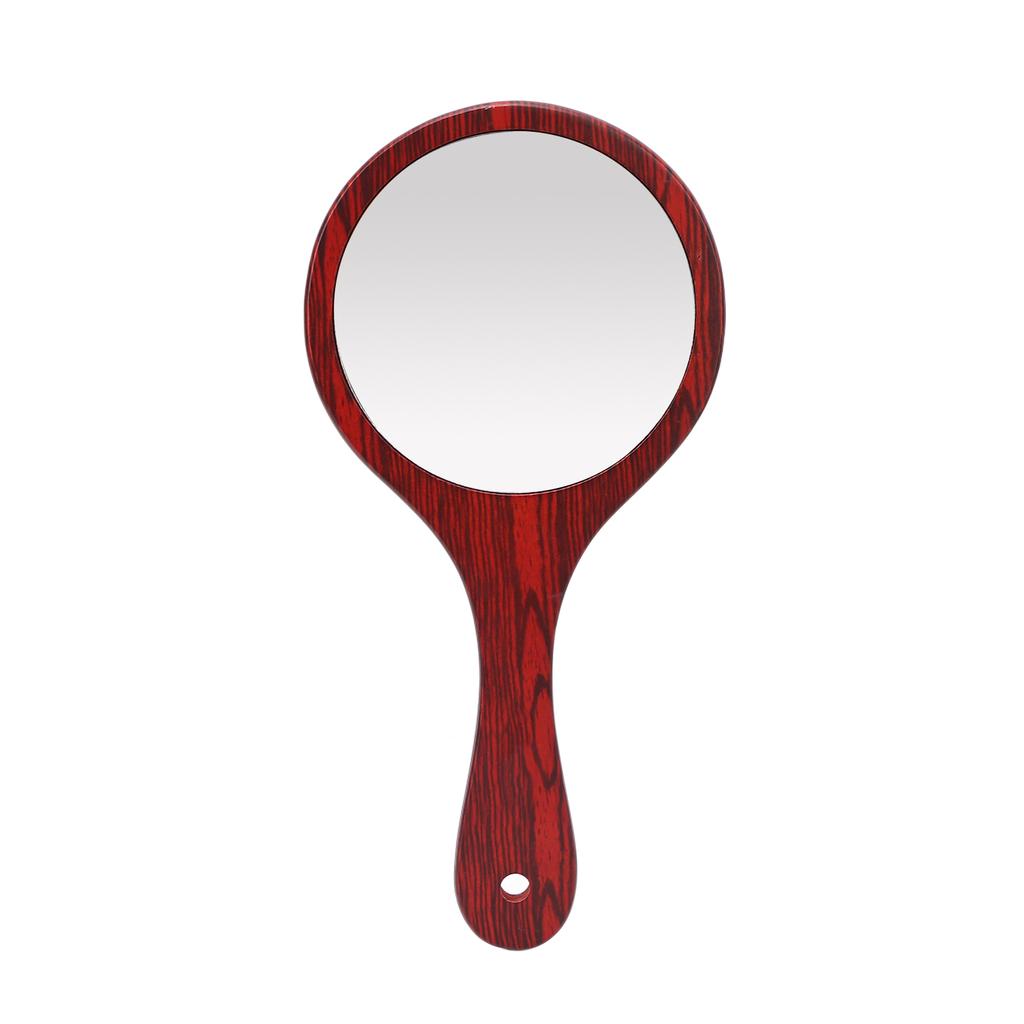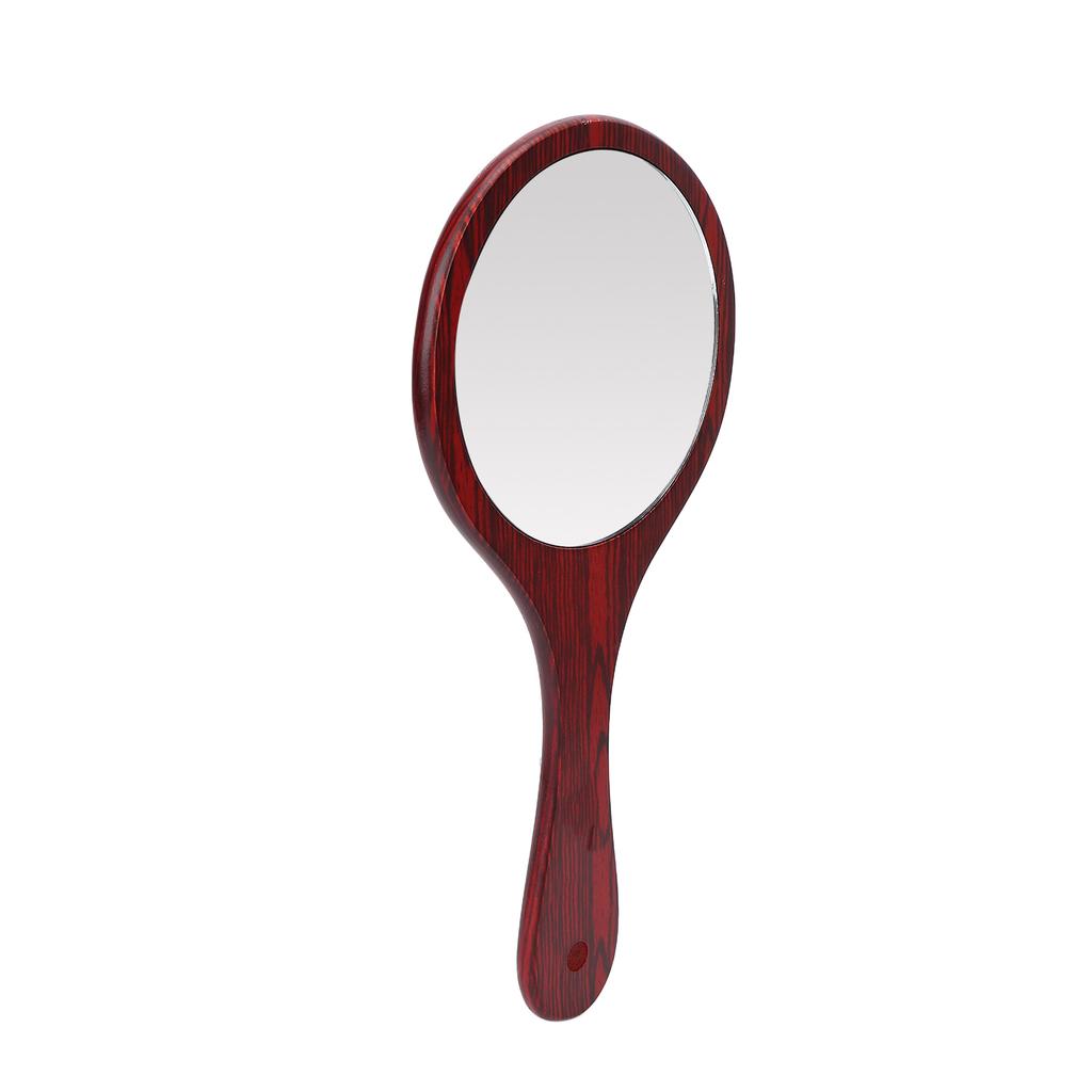 Vintage Handheld Mirror Wooden Handle Hanging Hole Makeup Hairdressing Mirror for Household Red