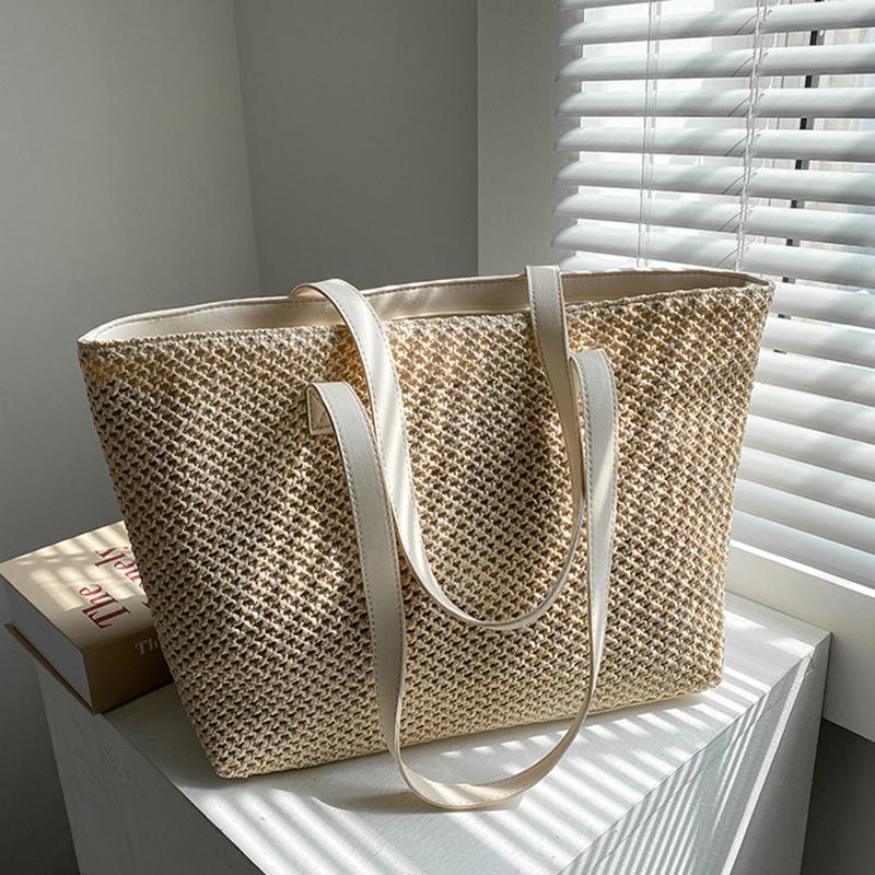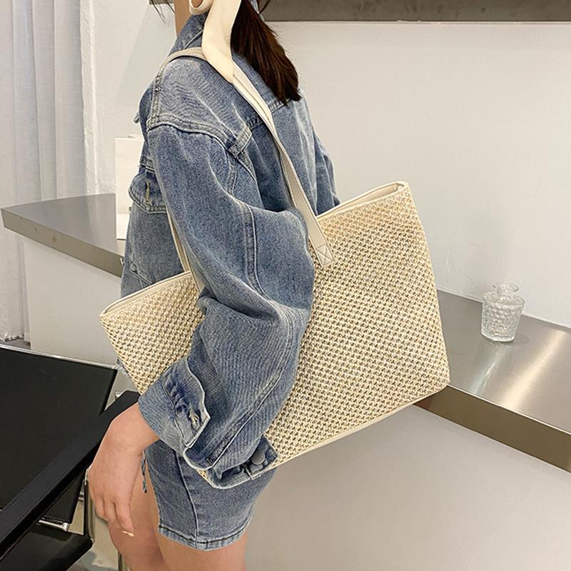 Повседневная соломенная сумка-тоут большой вместимости для женщин, плетеная из лозы, на плечо, ротанговая сумка, летняя пляжная сумка CLE