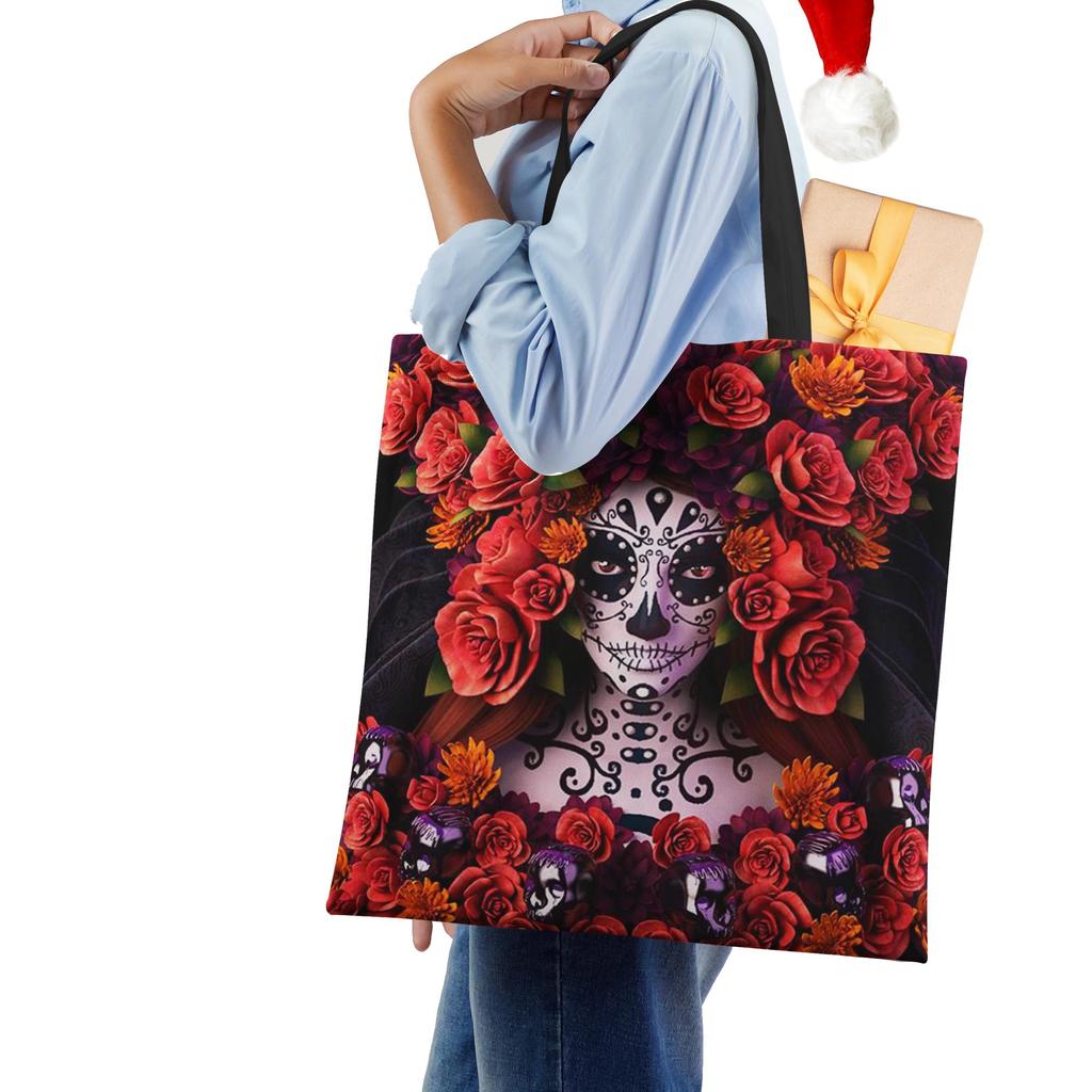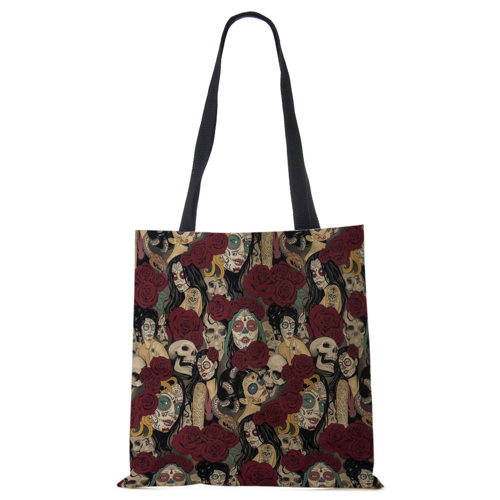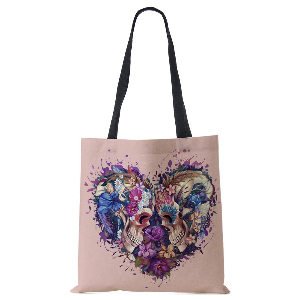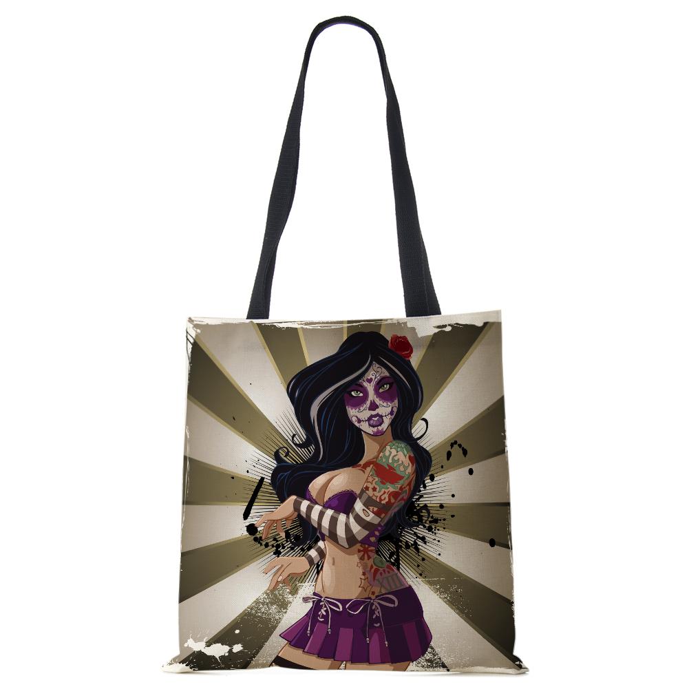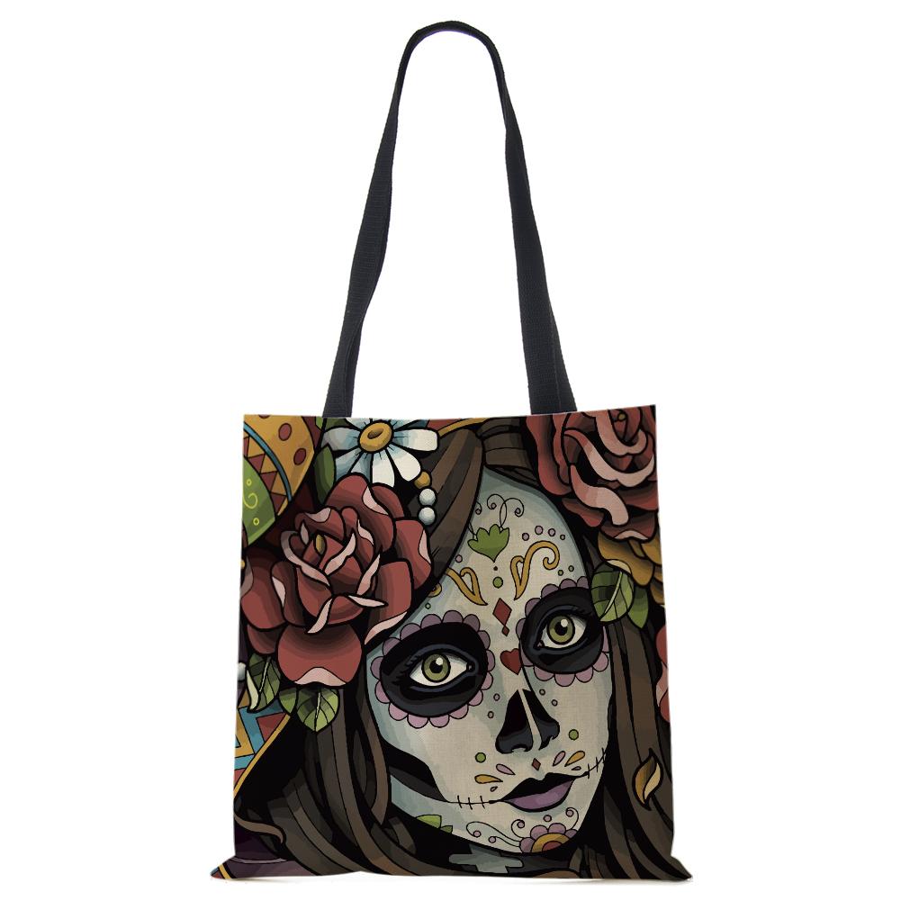 Женская сумка-тоут из льна с принтом скелета, повседневная дорожная пляжная подарочная сумка CLE