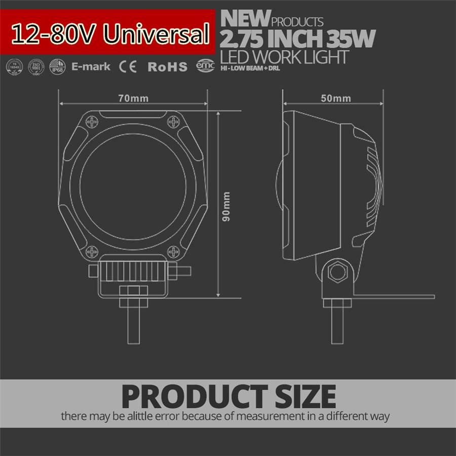 2X 2,75 дюйма 70 Вт 5000 лм светодиодные фары-прожекторы, рабочая лампа, точечный свет с ангельским глазом, внедорожный внедорожник, квадроцикл, джип, мотоцикл DRL, дальний/ближний свет, мигающий