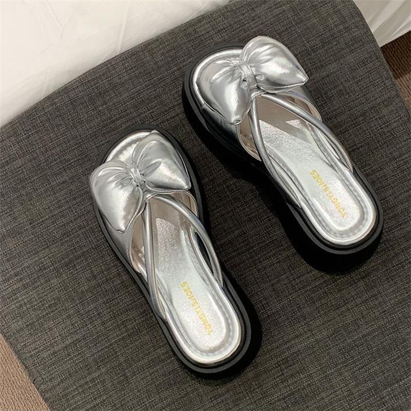 Туфли-шлепанцы в стиле феи с бантом, на толстой подошве, увеличивающие рост, крутые, женские, для лета 2025, новая мода, красивые сандалии для ношения с юбкой