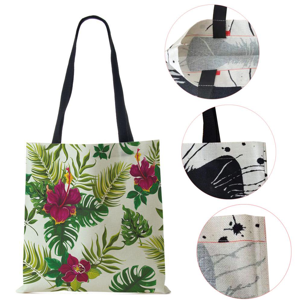 Женская парусиновая сумка через плечо шоппер лист растение харадзюку повседневная сумка эко переработанная большая вместимость дорожная сумка тоут для книг CLE