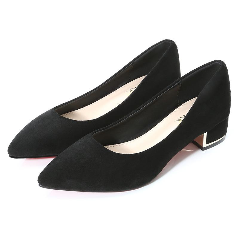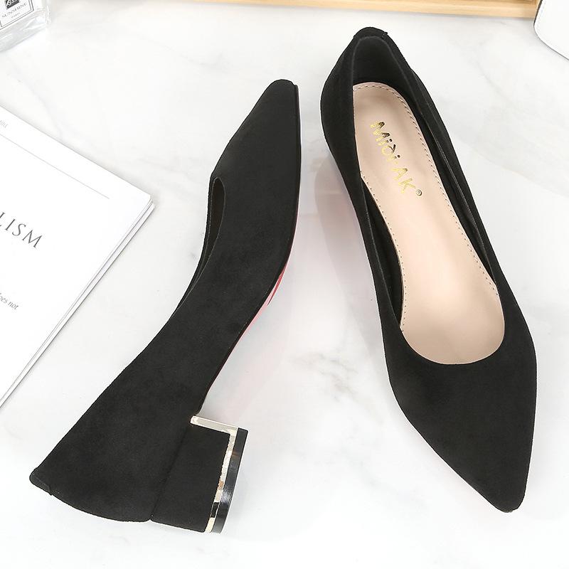 Новые остроносые туфли на высоком каблуке женские туфли на толстом каблуке с мелким вырезом профессиональные туфли с темпераментом черные большого размера туфли на высоком каблуке