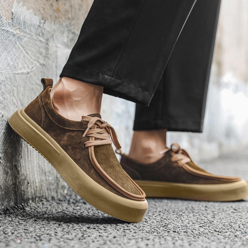 Мужская повседневная дышащая обувь из коровьей замши на шнуровке, балетки, уличная обувь, ковбойские кроссовки на платформе, уличный стиль, мужская обувь