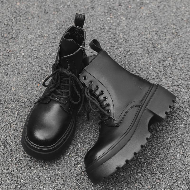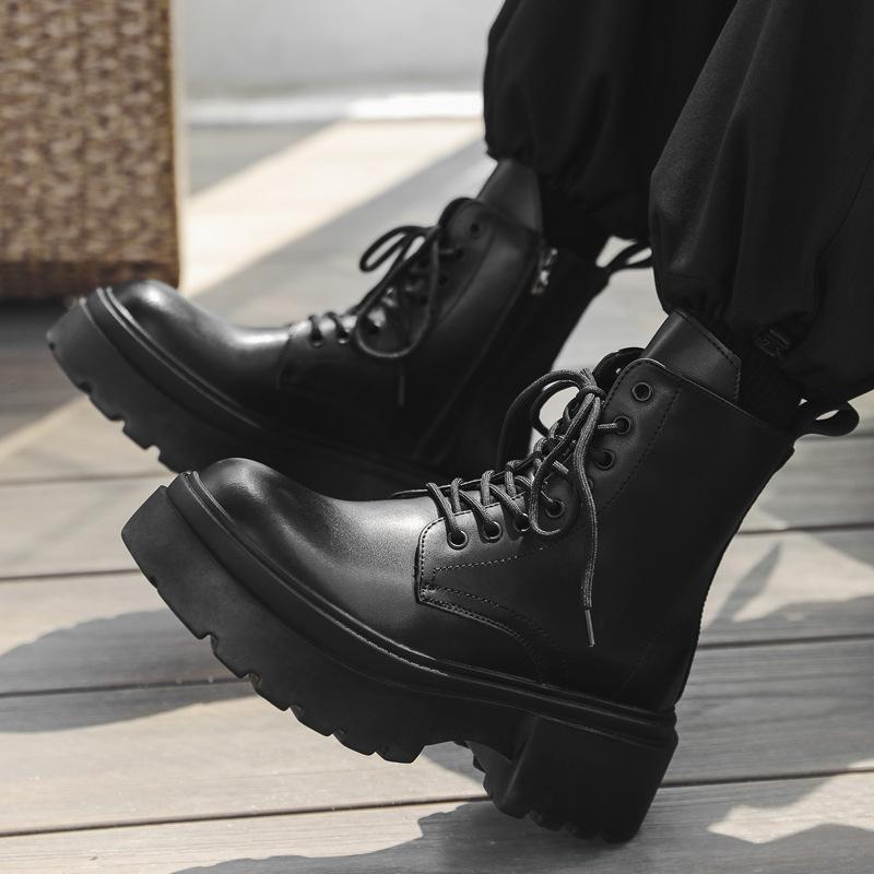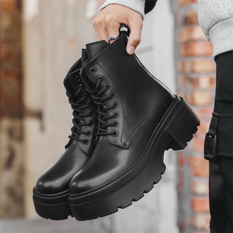 Мужские повседневные ботинки на платформе в британском стиле, черные модные туфли из натуральной кожи, ковбойские осенне-зимние ботинки, крутые мотоциклетные боты для мужчин