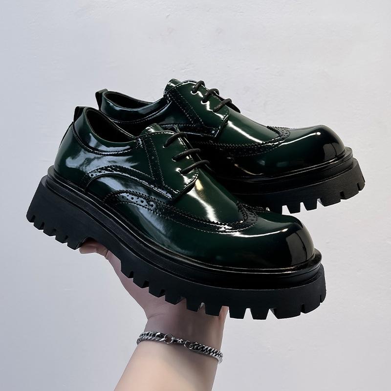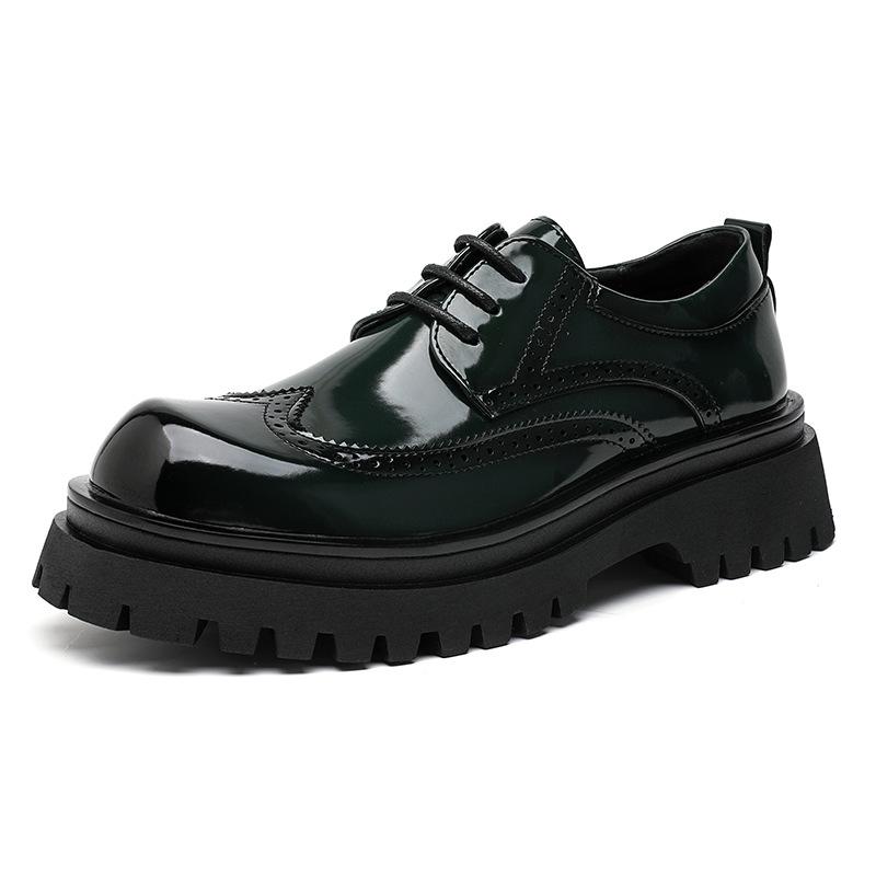 Мужская роскошная модная вечеринка клубное платье оригинальная кожаная обувь шнуровка платформа дерби обувь черно-зеленая резная броги обувь
