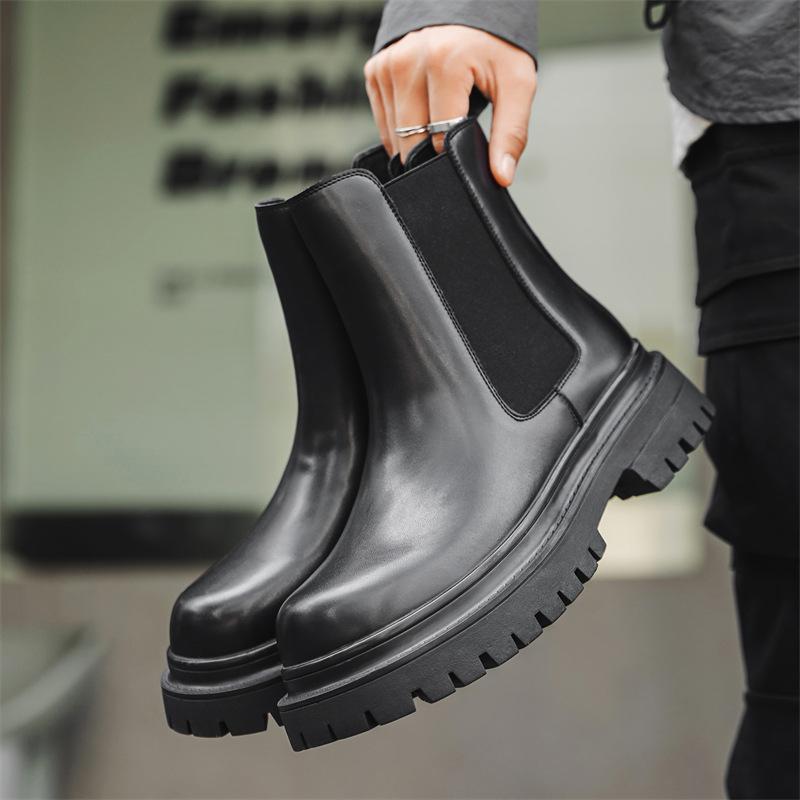 Мужская мода сцена ночной клуб высокие челси ботинки слипоны натуральная кожа обувь ковбойские ботинки на платформе крутые длинные мотоциклетные боты