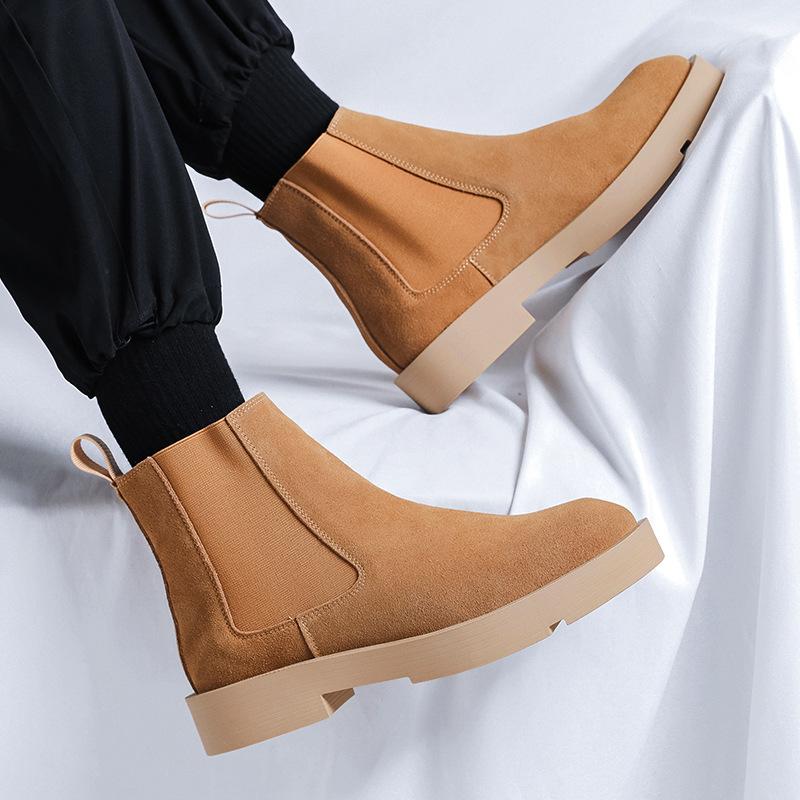 Мужское повседневное платье для вечеринки, банкета, ботинки челси, слипоны, туфли из коровьей замши, ковбойские ботинки на платформе, осенне-зимние ботильоны для мужчин