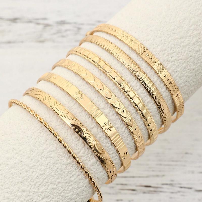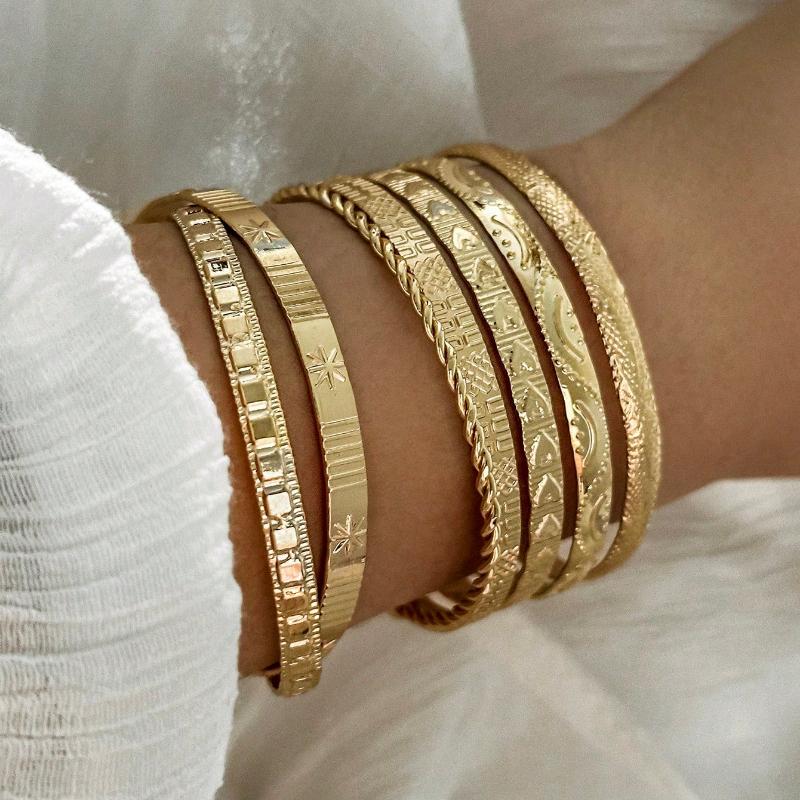 7 шт./Набор браслетов в европейском и американском стиле с чеканкой, стрелой, цветочным, преувеличенным шестиугольником, браслеты с застежкой-твист, ювелирные подарки