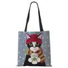 Сумка на плечо повседневная с милым принтом кошки, женская, для покупок, многоразовая, большая вместимость, холщовая, для путешествий, школы, пляжа, тоут-сумка CLE