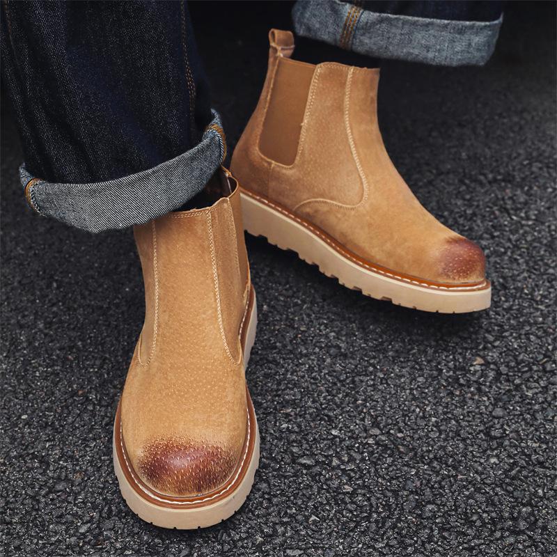 Мужские повседневные челси ботинки оригинальная кожаная обувь для улицы ковбойские рабочие ботинки весна осень красивые на платформе до щиколотки боты