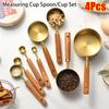 Measuring Cups Spoons Set Wooden Handle Baking Gadgets Stainless Steel Measuring Spoons for Nuts Baking Cooking Oil Milk