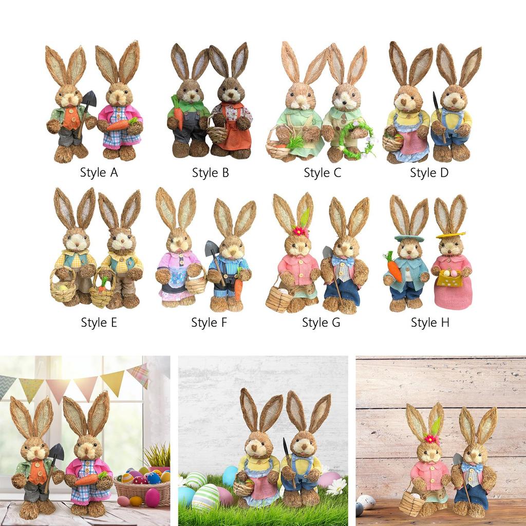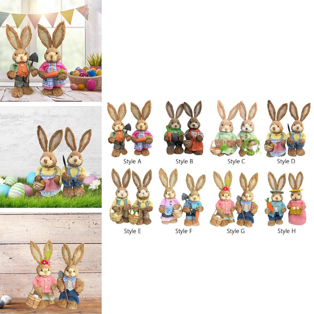2 штуки Соломенные фигурки пасхального кролика, украшение, высота 35 см, яркие и милые, реалистичные, праздничные подарки, изысканное мастерство