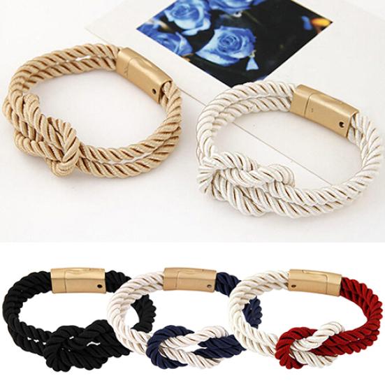 Женский мужской плетеный браслет-цепочка из веревки с магнитной застежкой и бантом