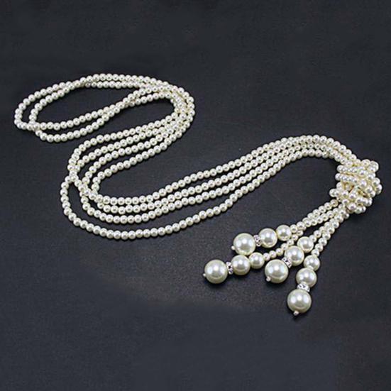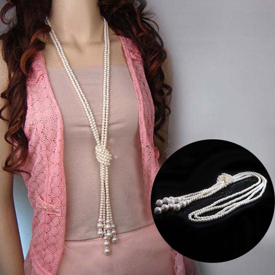 Женщины элегантный искусственный жемчуг кисточкой кулон длинная цепь прелести свитер ожерелье