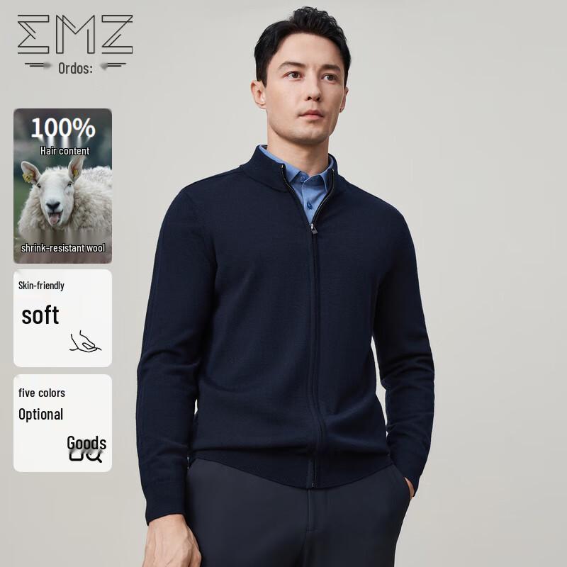 Мужской кардиган EMZ из шерсти с воротником-стойкой и полной молнией