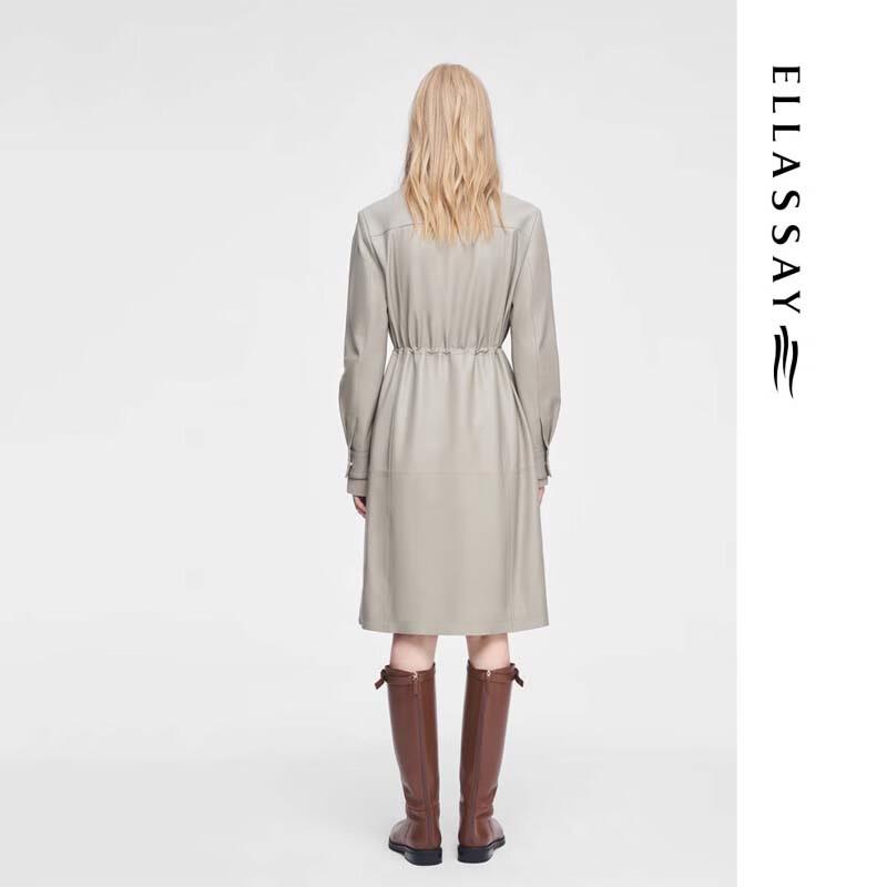 ELLASSAY Ruched Slim Mid-Length Leather Jacket