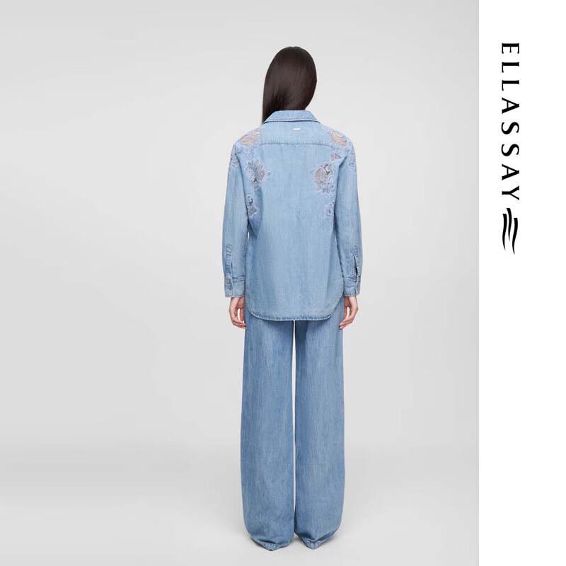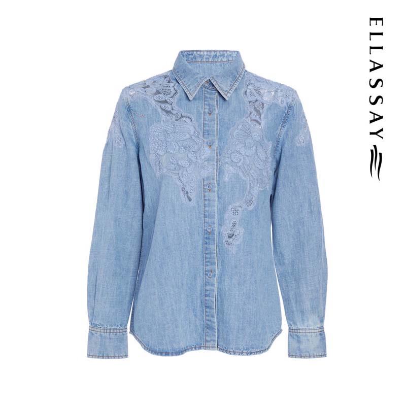 ELLASSAY Women's Elegant Lace Denim Shirt