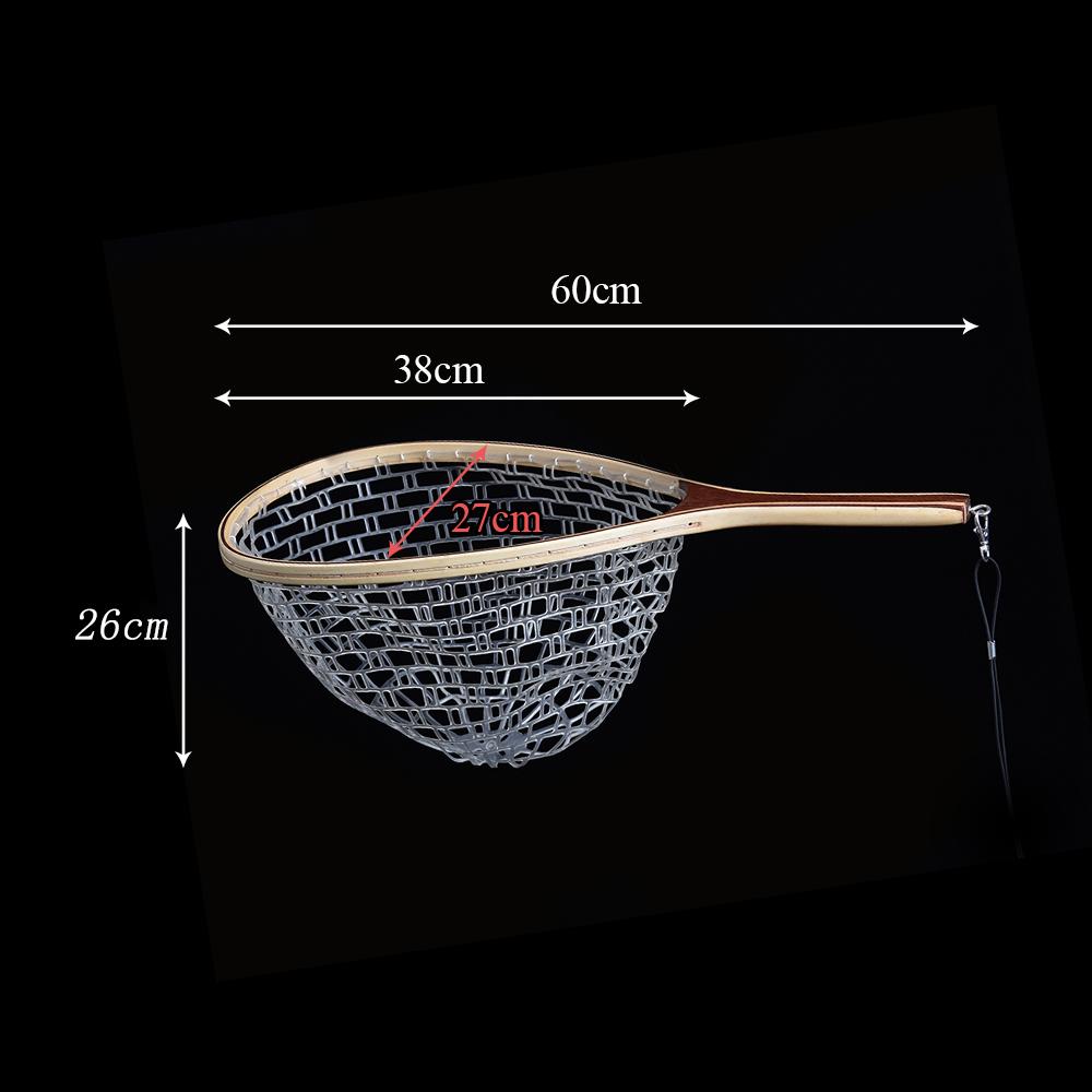 Fly Fishing Landing Net Wooden Handle Frame Catch and Release Net Portable Lightweight Rubber Fishing Net
