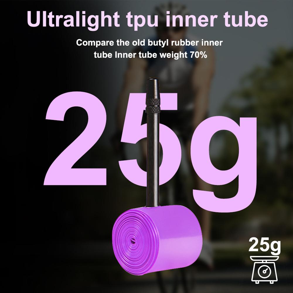 1. Изготовленные из высококачественного ТПУ материала, эти велосипедные камеры не только легкие (всего 25г) но также очень прочный, обеспечивая долгий срок службы.