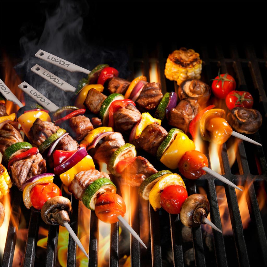 5 шт. 10-дюймовые плоские шампуры для барбекю на открытом воздухе, на заднем дворе, для пикника, барбекю, гриля, шампуры для кебаба, палочки для барбекю