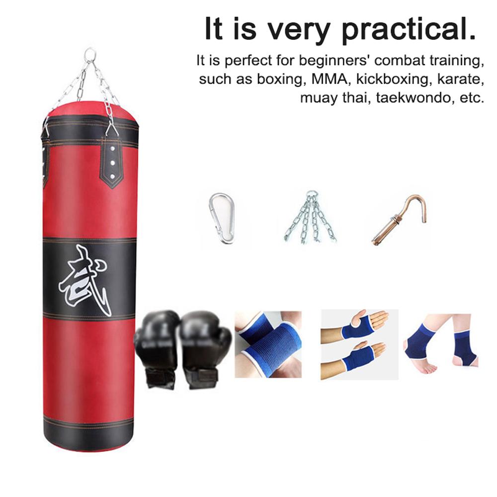 Незаполненный боксерский мешок, легко хранить и носить с собой, вы можете заполнить его песком, древесной щепой, старой одеждой, губками и т. Д.. Наполнитель предпочтительно не должен превышать 18 кг.