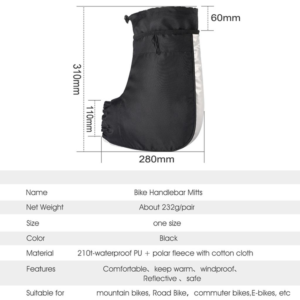 Windproof Thermal Bike Handlebar Mittens Bicycle Electric Bike Warm Handlebar Cover Reflective Painting Safety Cycle