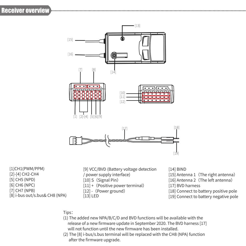 1. Приемник FTr8B совместим со всеми передатчиками AFHDS 3 и радиочастотными модулями (включая PL18, NB4, NB4 Lite, FRM302 и т.д.)