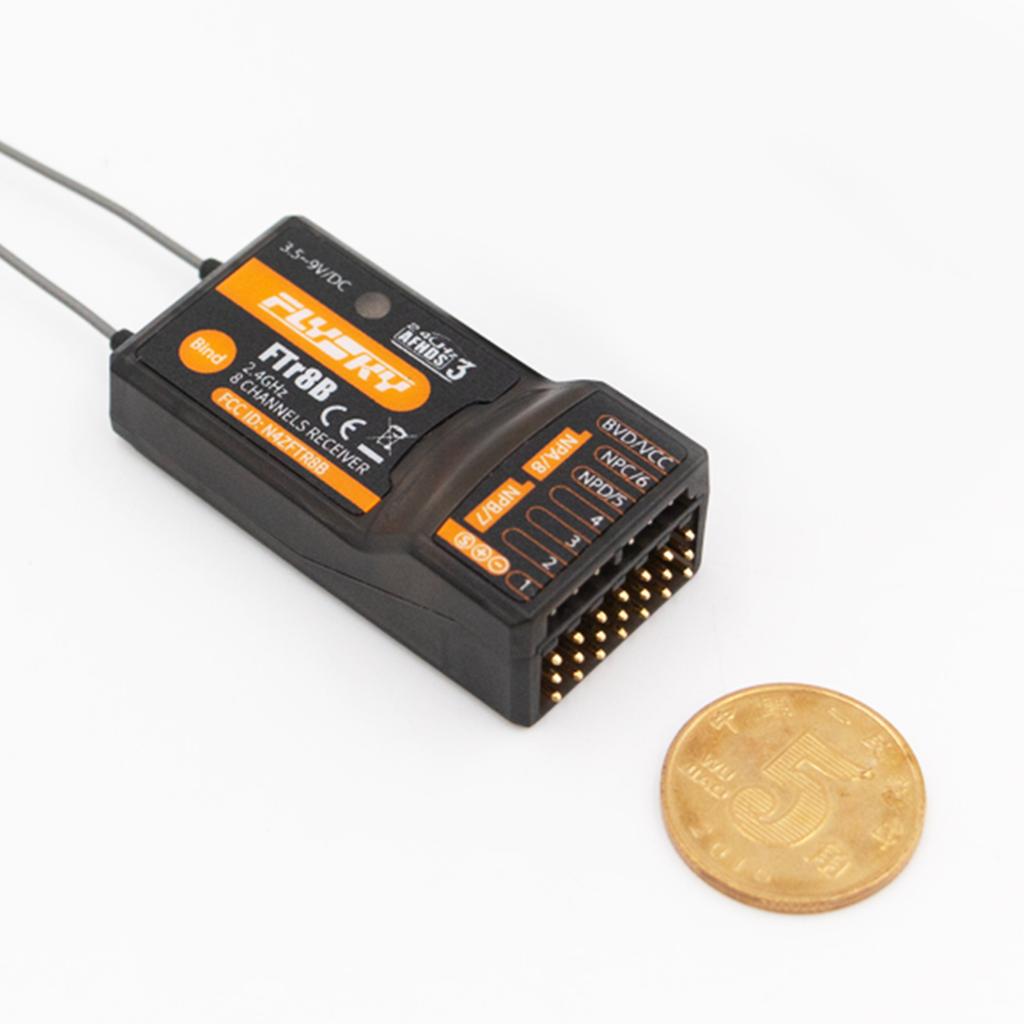 Приемник FTr8B использует цифровую систему Flysky с автоматической скачкообразной перестройкой частоты третьего поколения (АФХДС 3), который оснащен двойными антеннами и двунаправленной передачей данных, обычно известной как телеметрия, а также выходом i-bus s.bus и переключением PWM PPM на канале 1. Совместимость со всеми передатчиками AFHDS 3 и радиочастотными модулями.